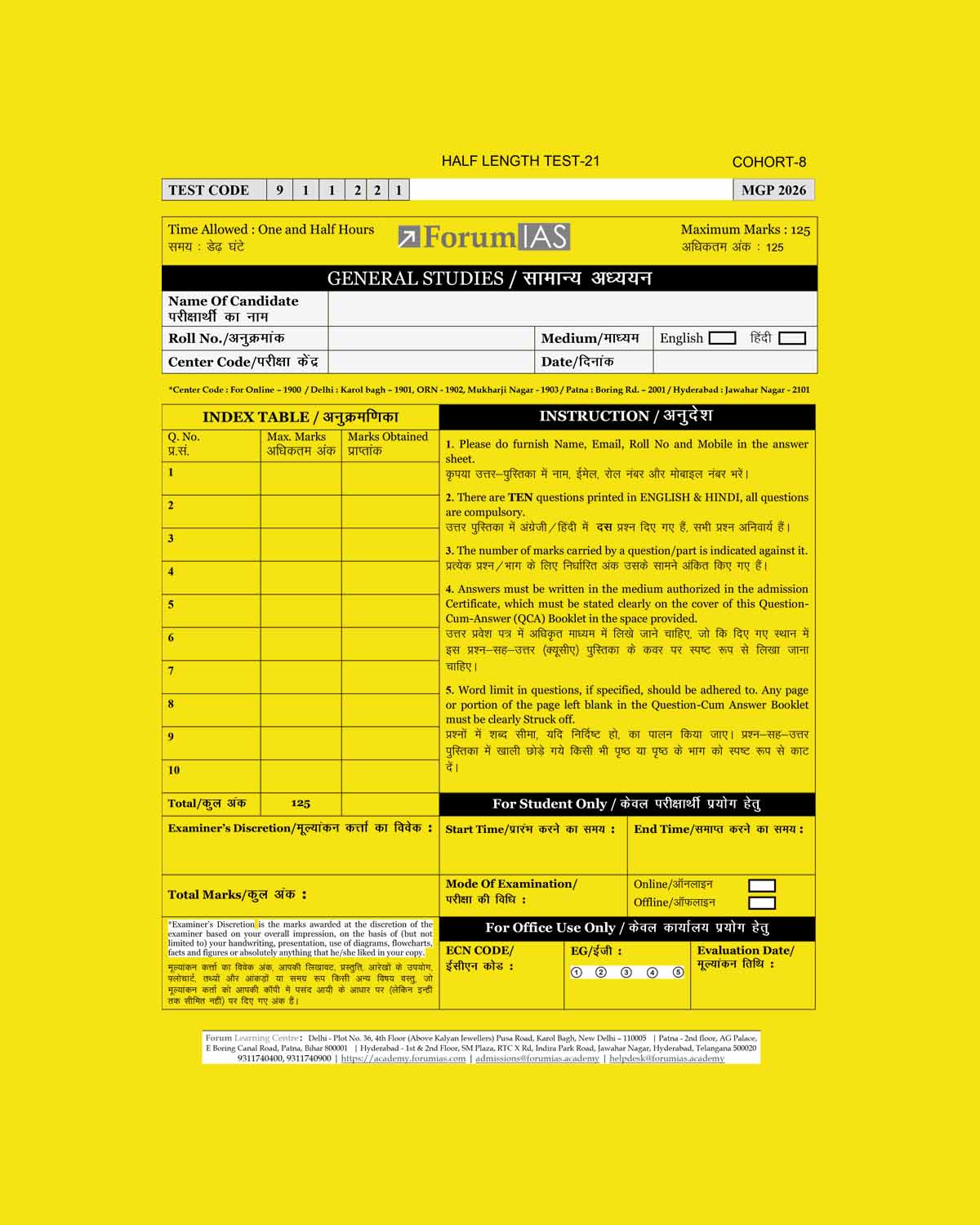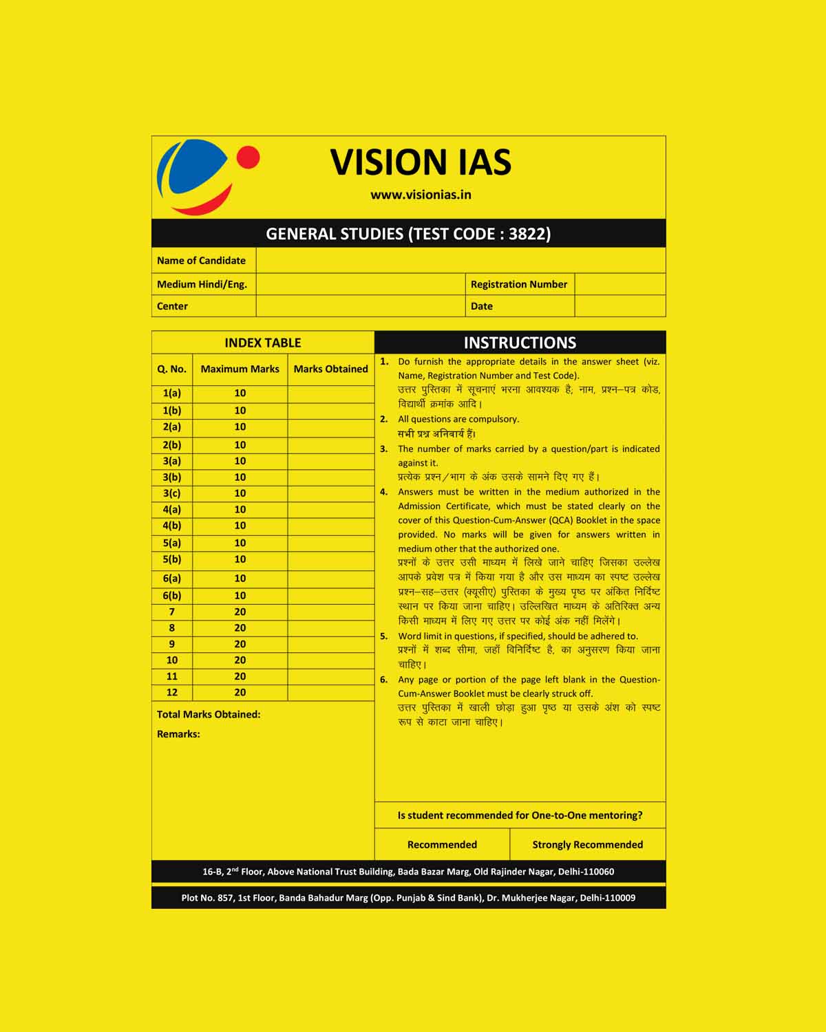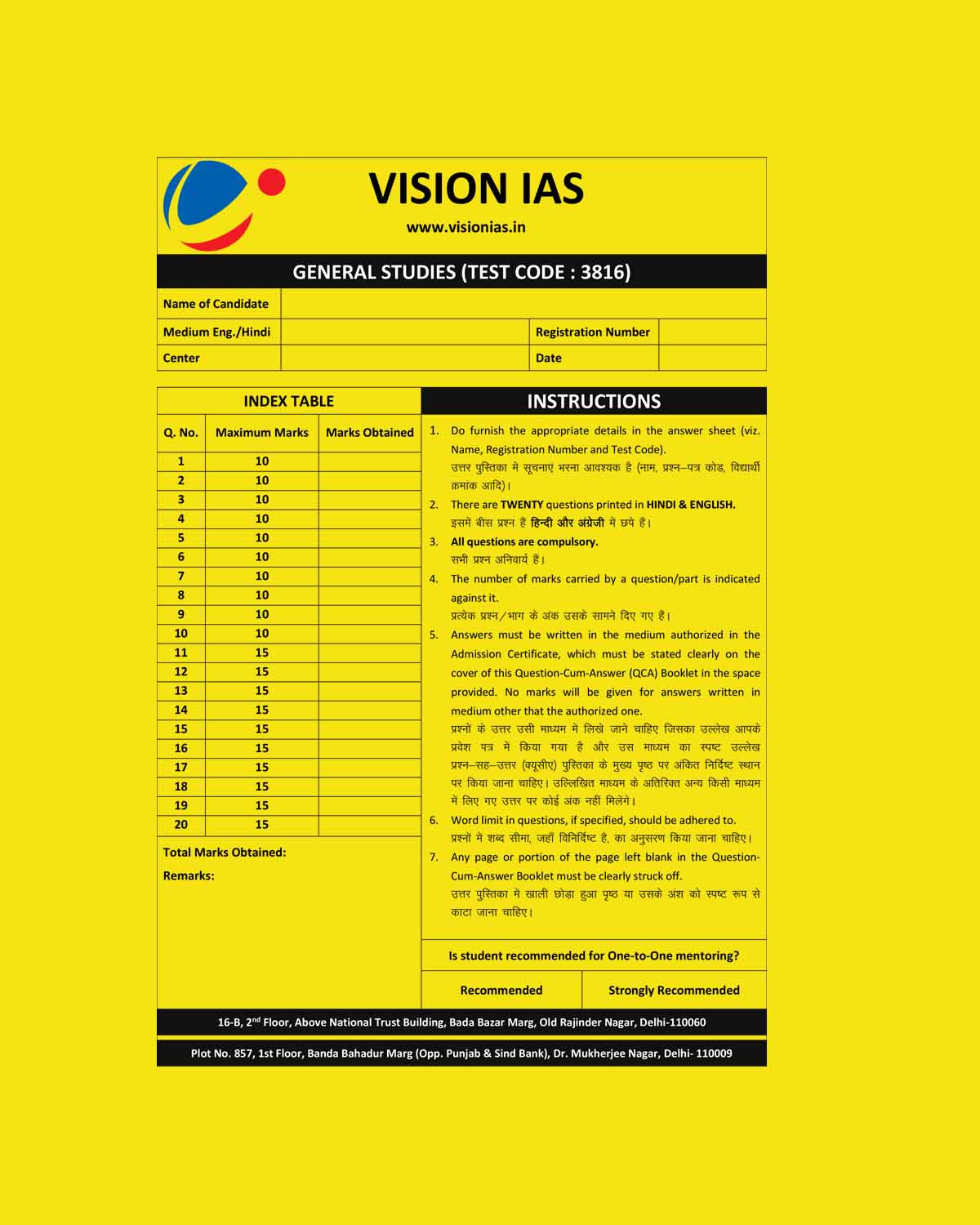 VISIONIAS 2024 QUESTIONS CUM ANSWER BOOKLETS TEST-19 TO TEST-21 ANSWER BOOKLET TEST CODE 2359 FINAL 2024 {ENGLISH & HINDI} {BLACK AND WHITE} GROUPED