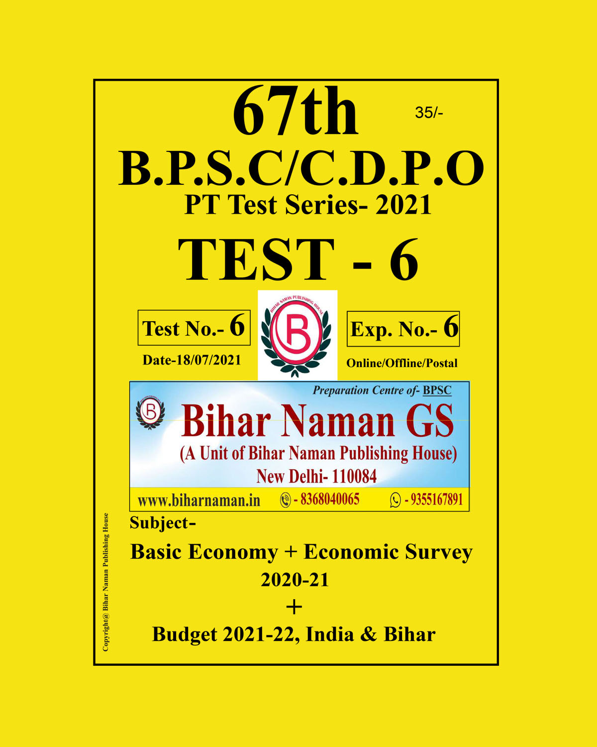 67TH B.P.S.C - C.D.P.O -PT TEST SERIES – 2021 TEST-6 ( SUBJECT- BASIC ECONOMY+ECONOMIC SURVEY 2020-21 +BUDGET 2021-22 -INDIA & BIHAR) quantity