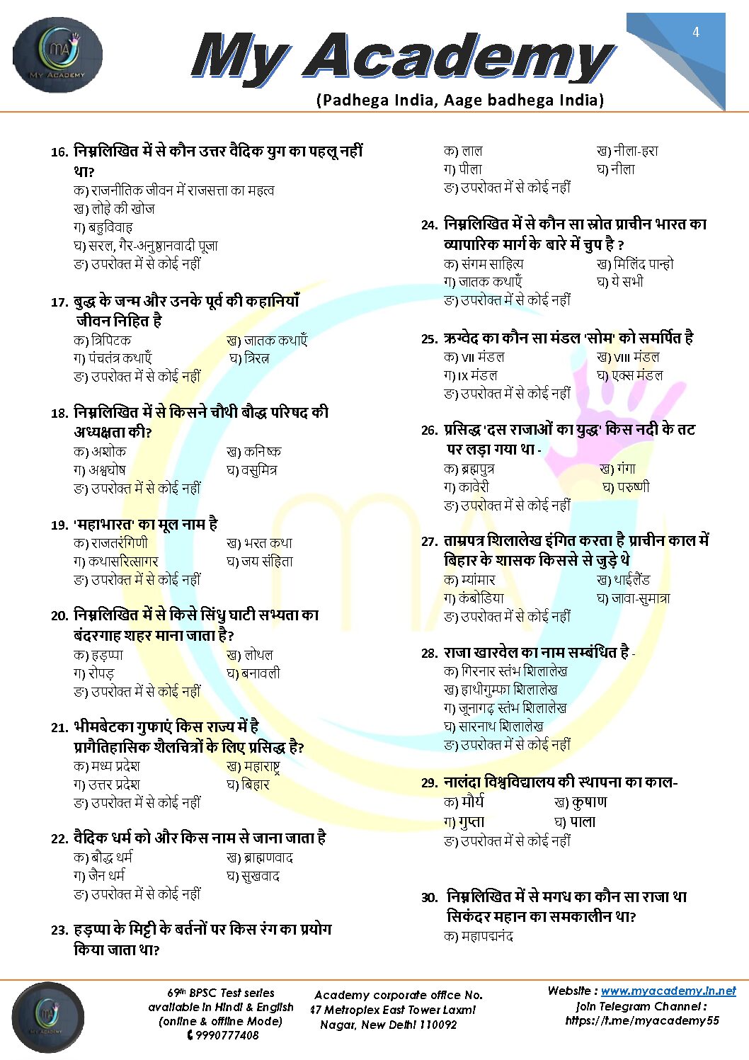 / BPSC MY ACADEMY 69TH BPSC PRELIMS TEST–01 TO 04 (2023) HINDI MEDIUM (BLACK & WHITE)