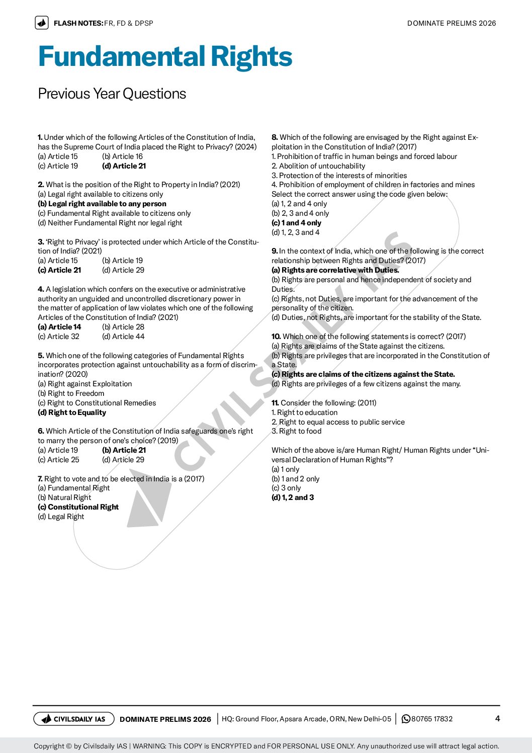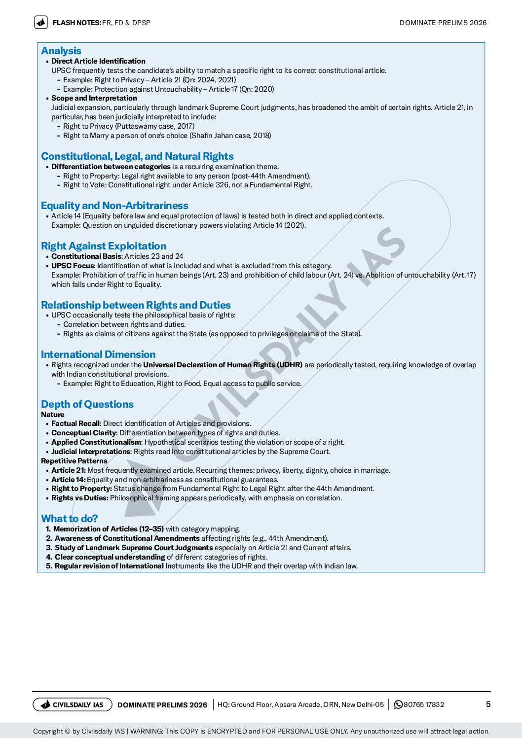 / CIVILS DAILY IAS 2026 DOMINATE PRELIMS FLASH NOTES FR, FD & DPSP 2026 FINAL (ENGLISH) {BLACK AND WHITE}