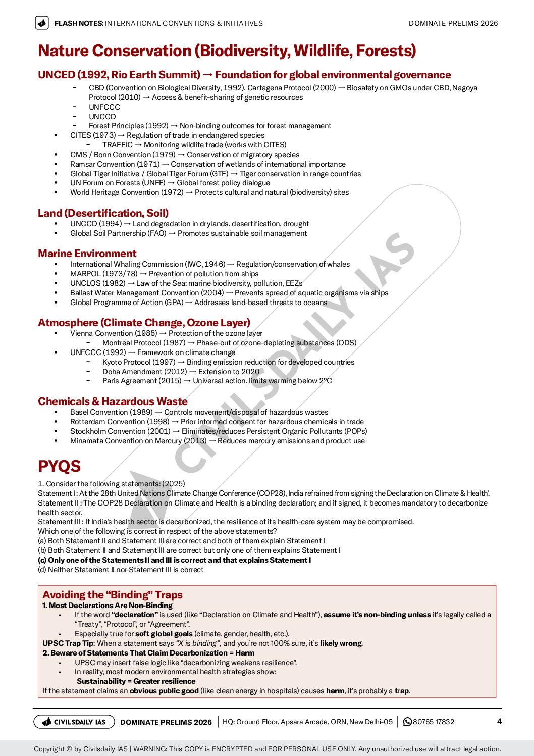 / CIVILS DAILY IAS 2026 DOMINATE PRELIMS FLASH NOTES INTERNATIONAL CONVENTIONS & INITIATIVES 2026 FINAL (ENGLISH) {BLACK AND WHITE}