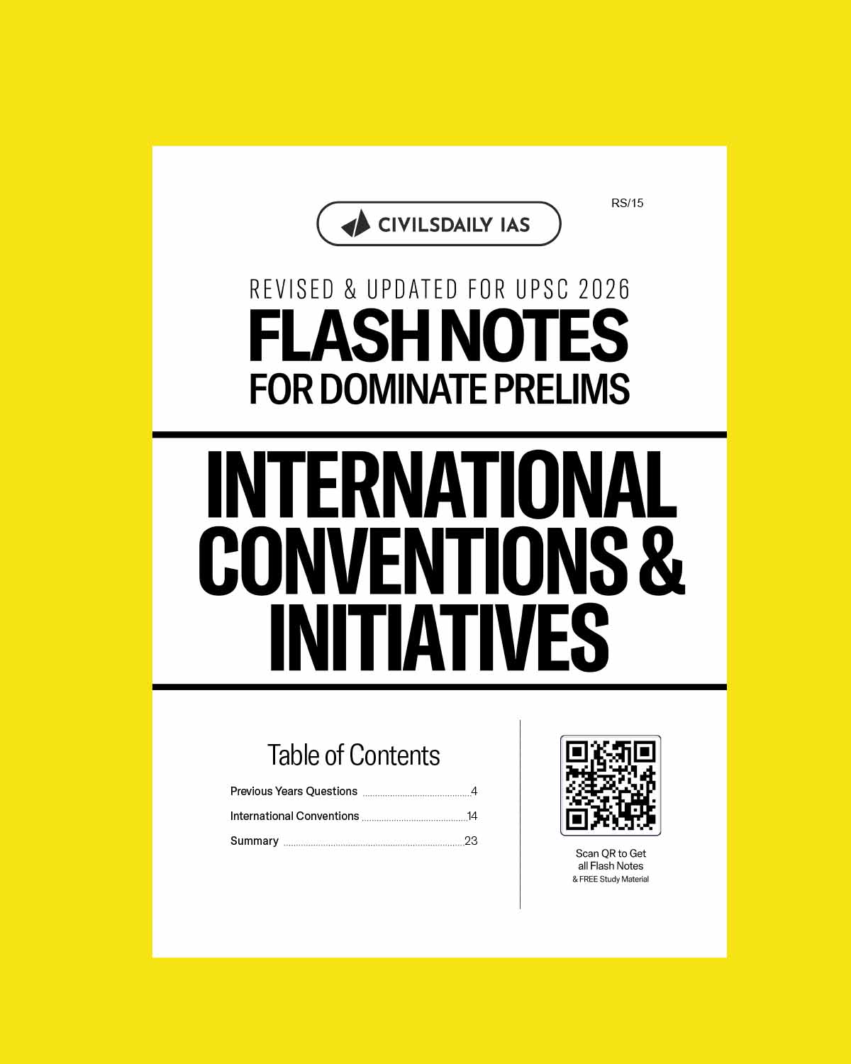 CIVILS DAILY IAS 2026 DOMINATE PRELIMS FLASH NOTES INTERNATIONAL CONVENTIONS & INITIATIVES 2026 FINAL (ENGLISH) {BLACK AND WHITE} quantity