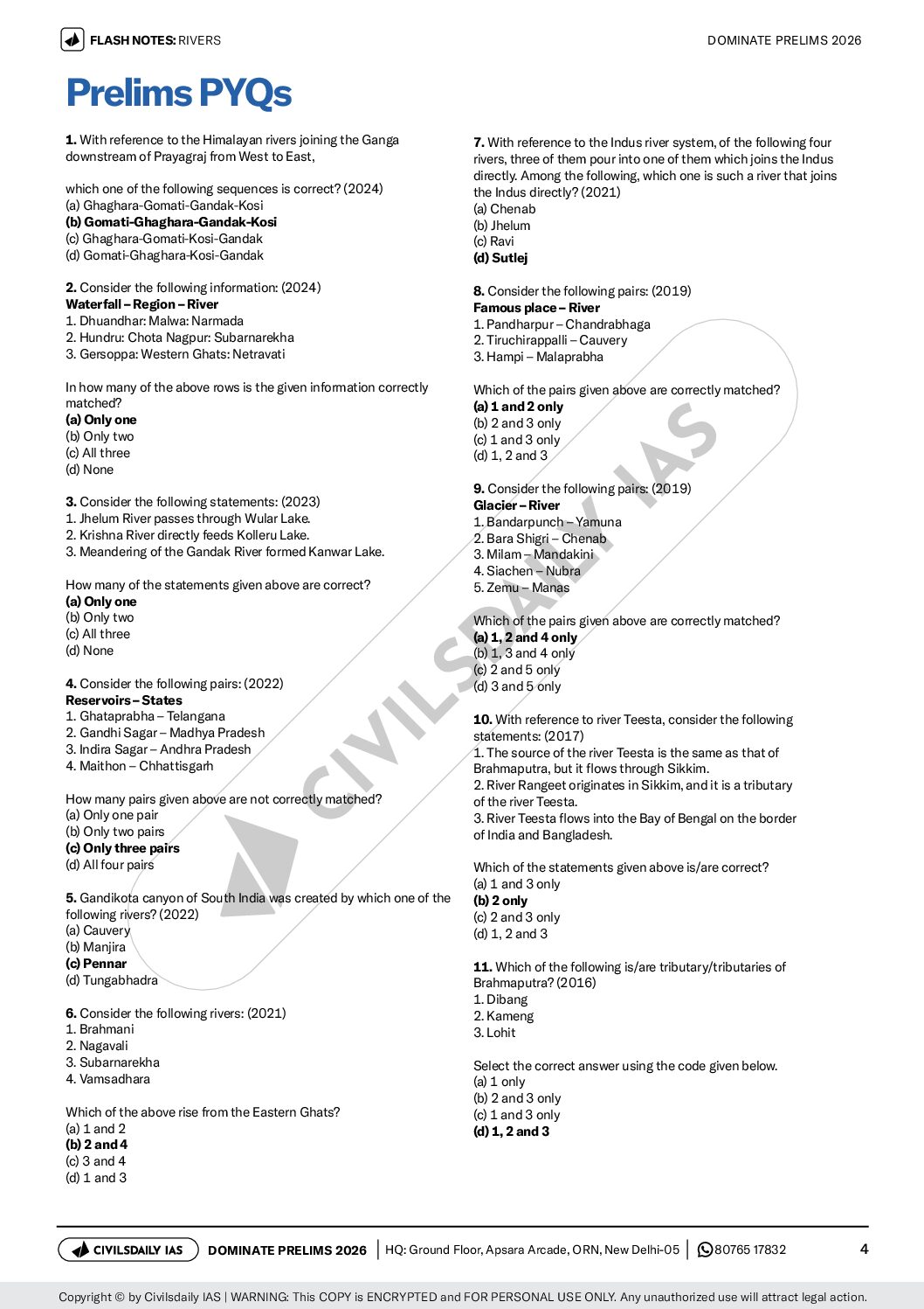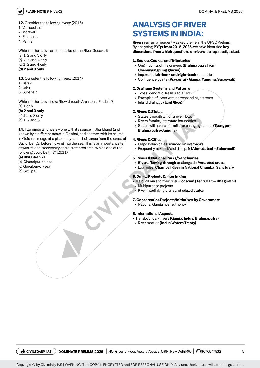 CIVILS DAILY IAS 2026 DOMINATE PRELIMS FLASH NOTES RIVERS 2026 FINAL (ENGLISH) {BLACK AND WHITE}
