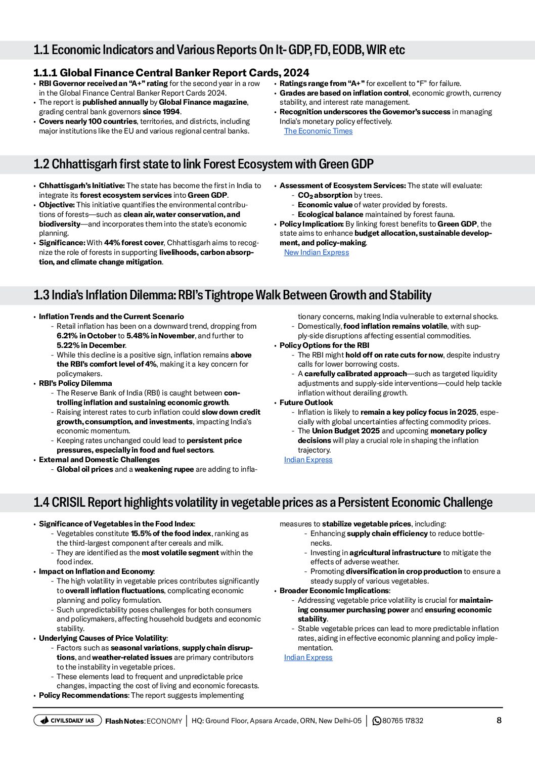 CIVILS DAILY IAS DOMINATE PRELIMS 2025 FLASH NOTES ECONOMY 2025 FINAL (ENGLISH) {BLACK AND WHITE}