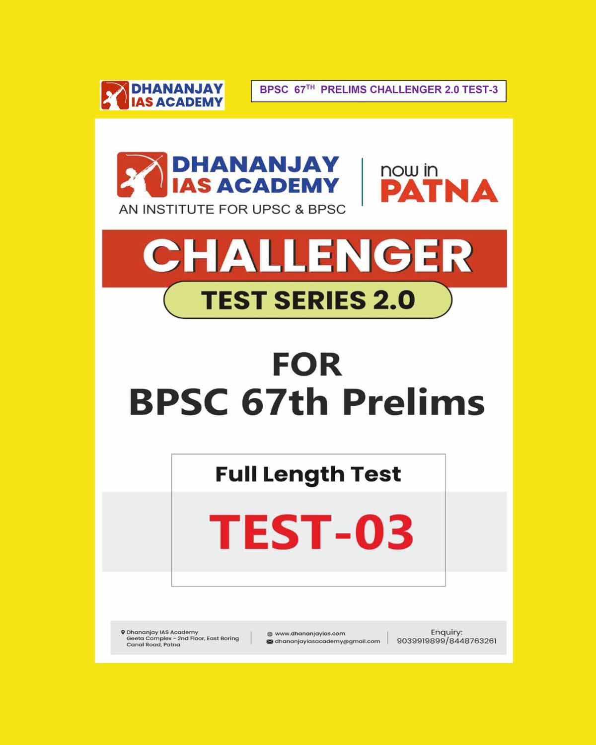 DHANANJAY IAS ACA DEMY TEST-3 FULL LENGTH TEST CHALLENGER TEST SERIES FOR 2.0 BPSC 67TH PRELIMS (BLACK & WHITE)