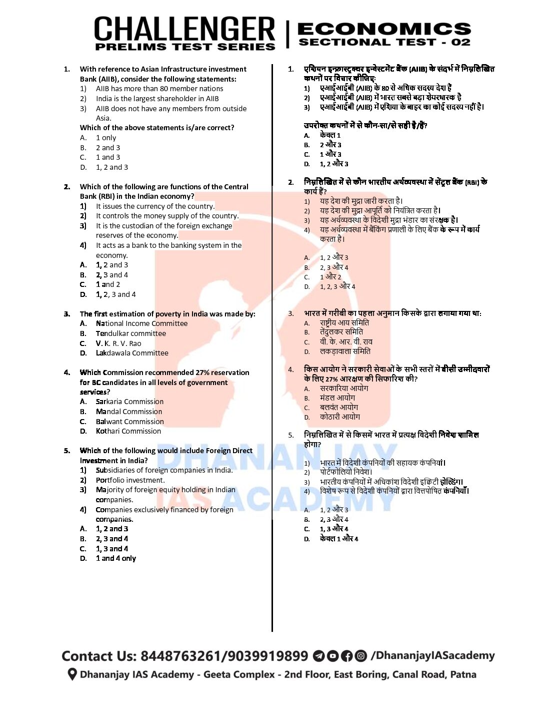/ DHANANJAY IAS ACADEMY 2023 PRELIMS SECTIONAL TEST-02 (ECONOMICS) ENGLISH MEDIUM (BLACK & WHITE)