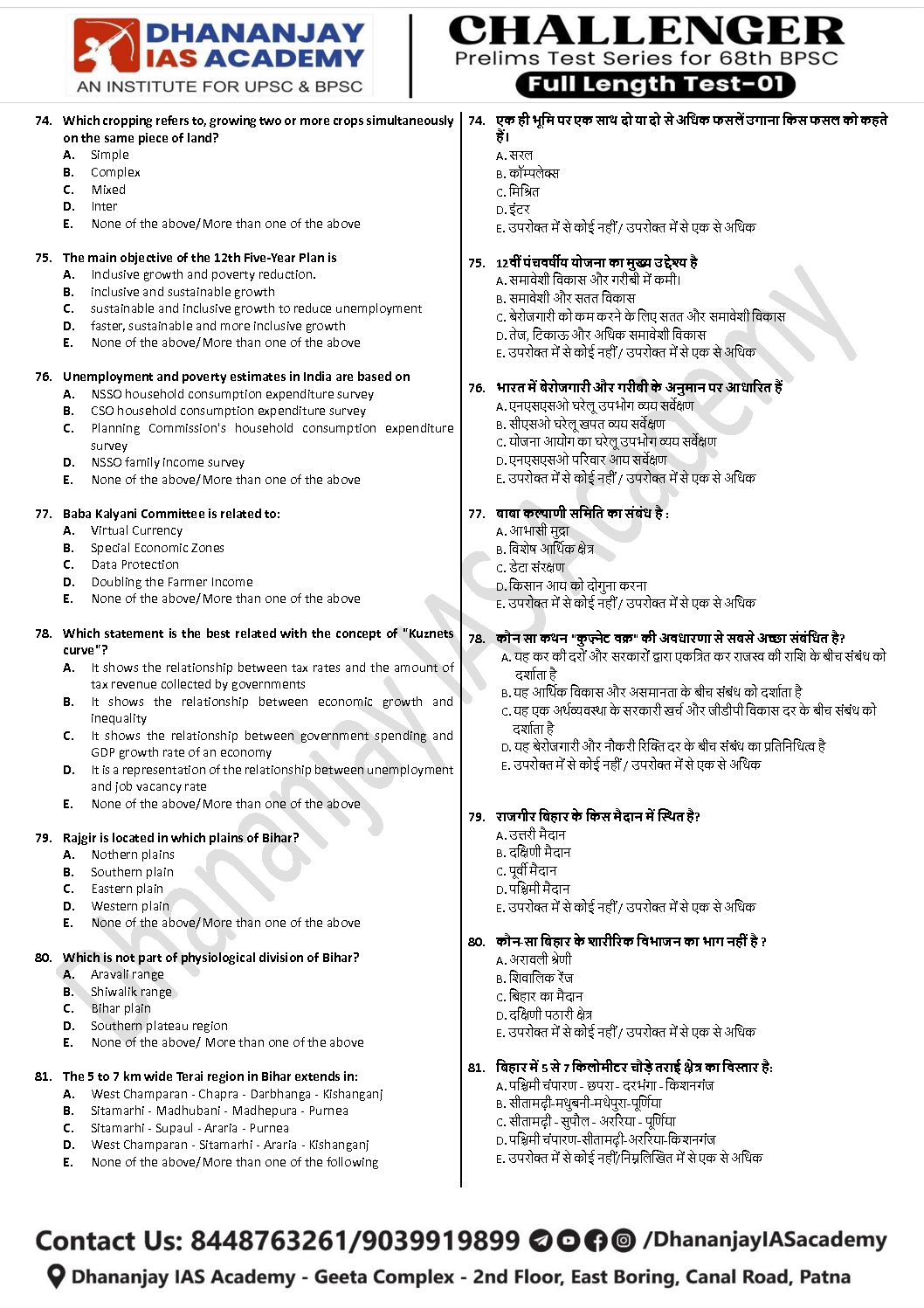 / DHANANJAY IAS ACADEMY BPSC CHALLENGER PRELIMS FULL LENGTH TEST-1 BILINGUAL (BLACK & WHITE)