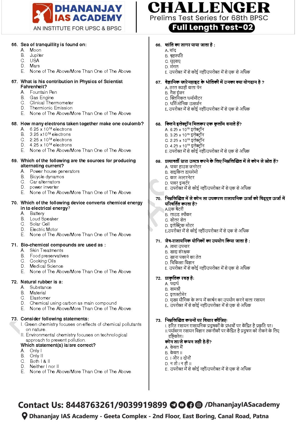 DHANANJAY IAS ACADEMY BPSC CHALLENGER PRELIMS FULL LENGTH TEST-2 BILINGUAL (BLACK & WHITE)