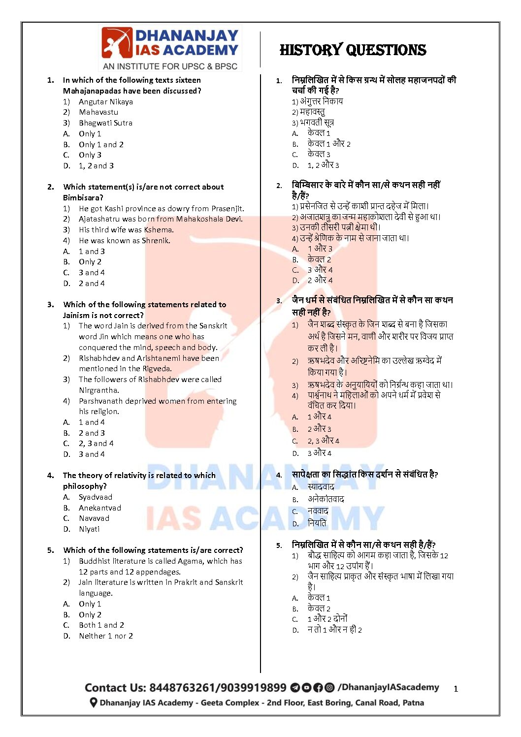 / DHANANJAY IAS PRELIMS TEST 2024 TEST-2 HISTORY 2024 FINAL BPSC {ENGLISH} {BLACK AND WHITE}
