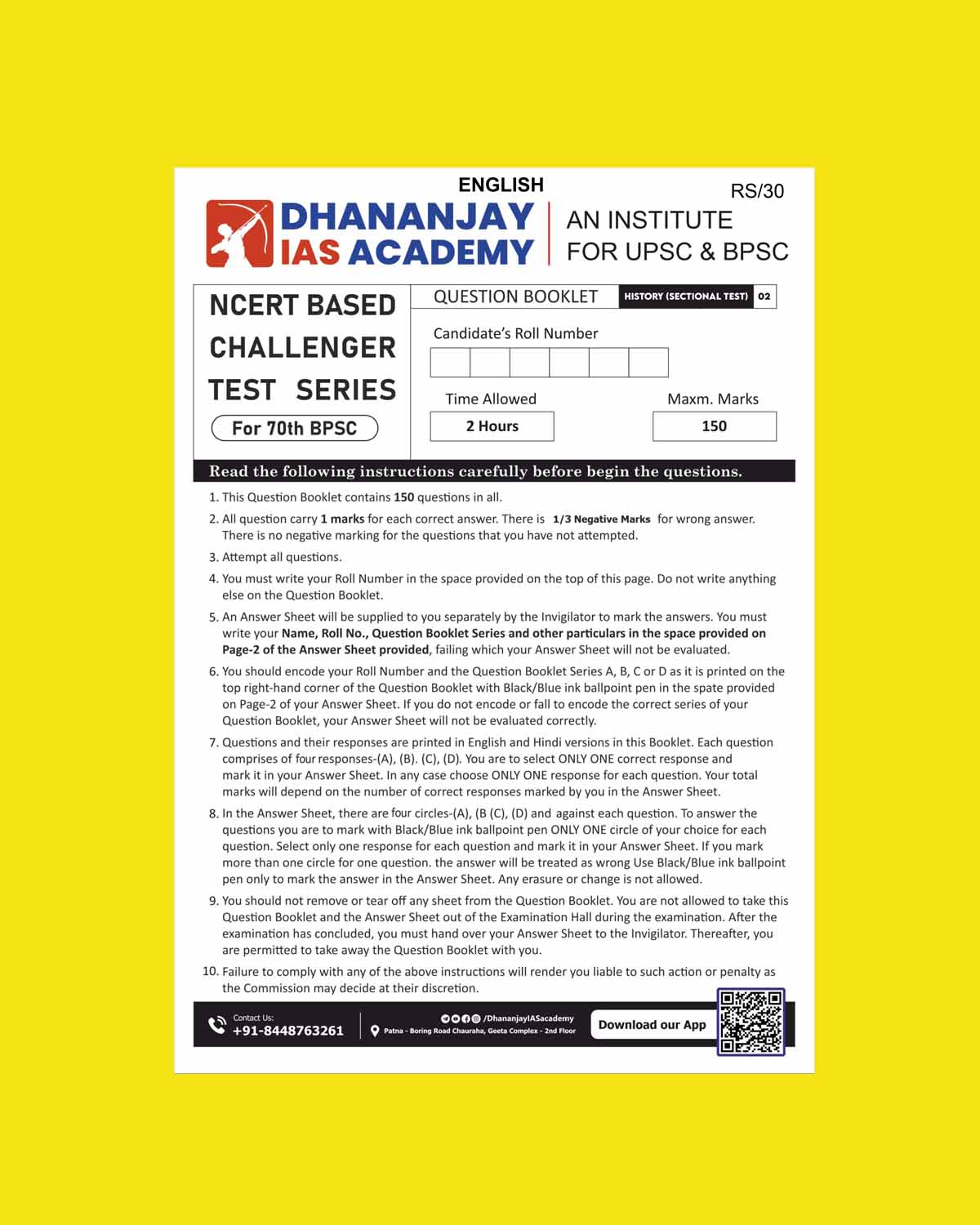 DHANANJAY IAS PRELIMS TEST 2024 TEST-2 HISTORY 2024 FINAL BPSC {ENGLISH} {BLACK AND WHITE} quantity