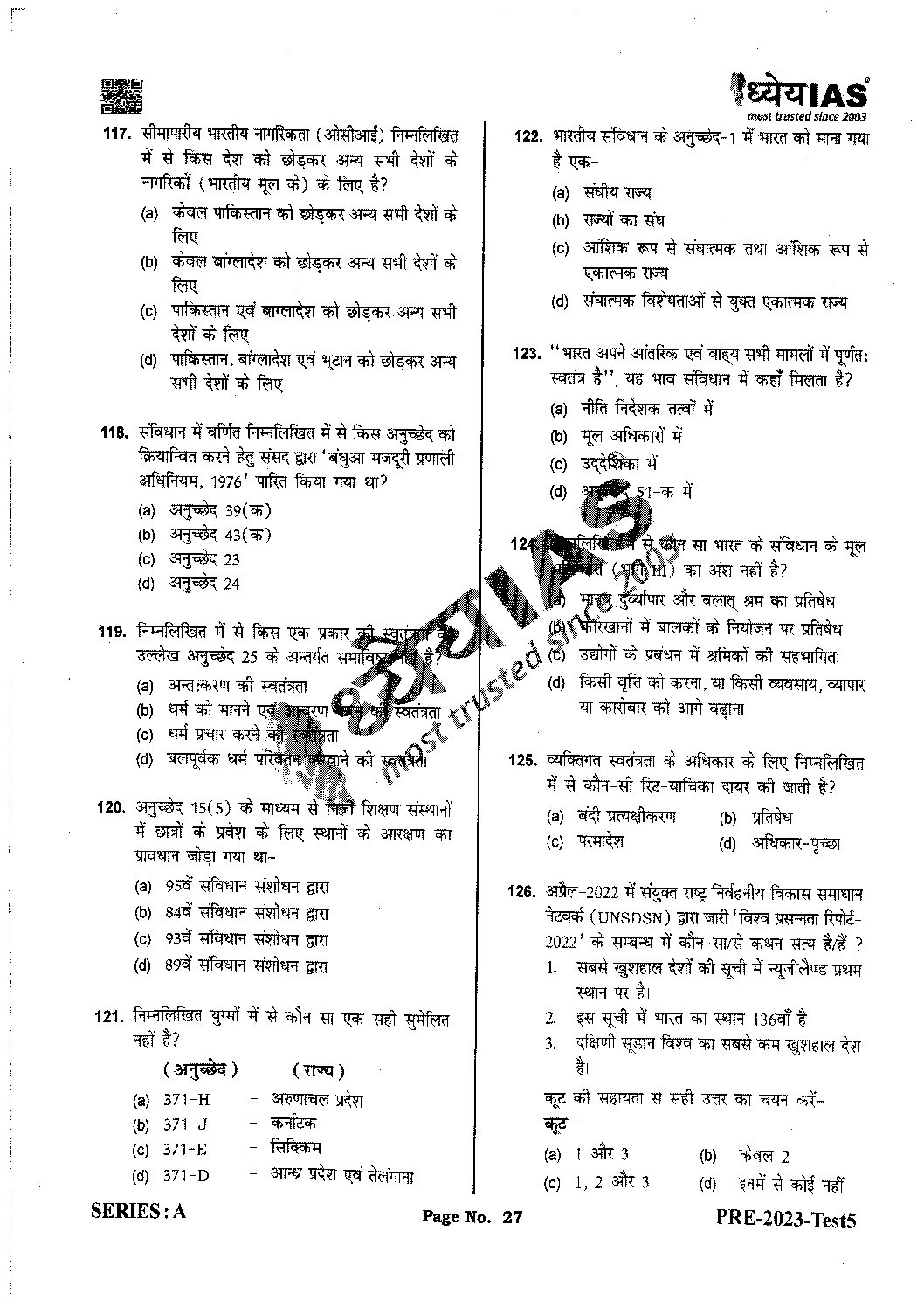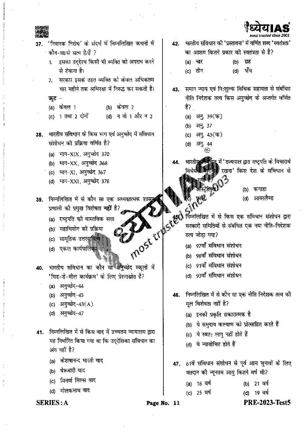 / DHYEYA IAS 2023 UPPCS PT TEST -5 BILINGUAL (BLACK & WHITE)