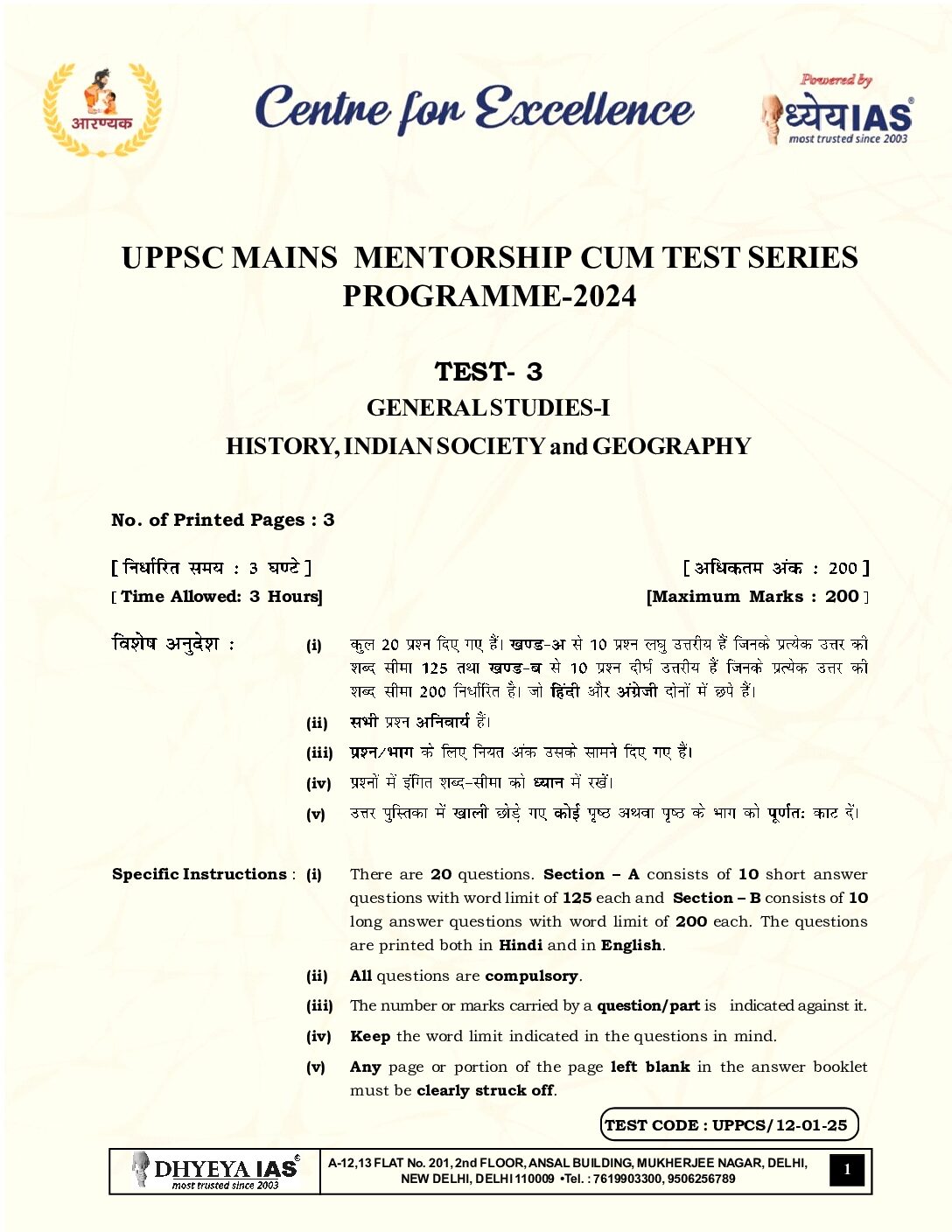 / DHYEYA IAS UPPCS TEST-3 TO 10 2024 FINAL(ENGLISH) {BLACK AND WHITE}