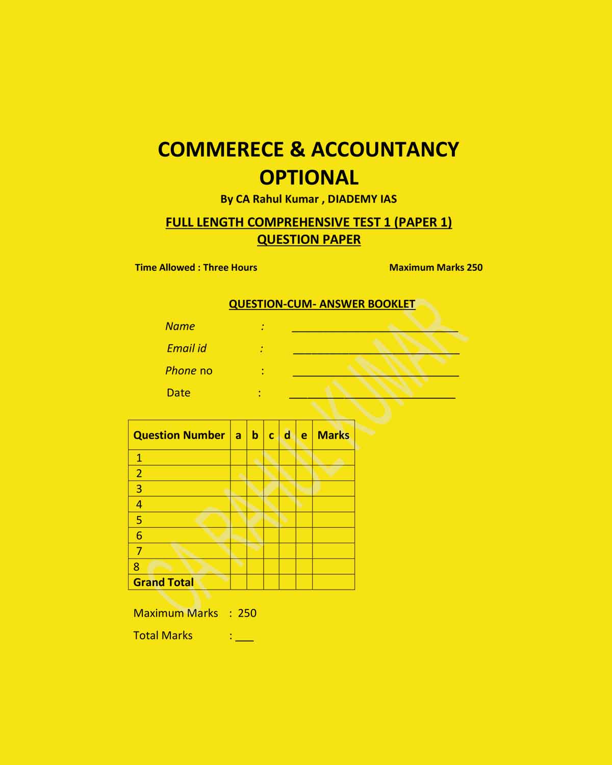 DIADEMY IAS 2023 QUESTION CUM ANSWER BOOKLETS TEST-7 (FINANCIAL ACCOUNTING) 2023 FINAL (ENGLISH) (BLACK AND WHITE) quantity
