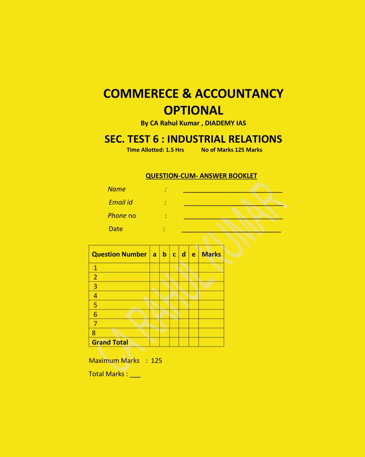 DIADEMY IAS 2023 QUESTION CUM ANSWER BOOKLETS TEST-6 (INDUSTRIAL RELATIONS) 2023 FINAL (ENGLISH) (BLACK AND WHITE)