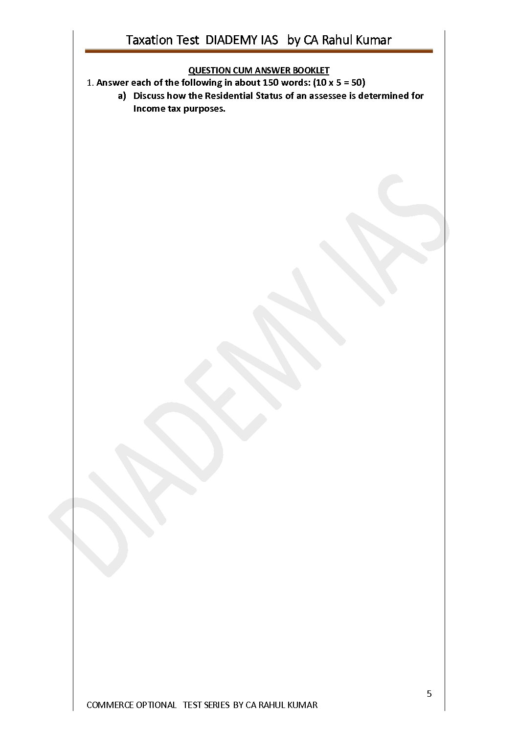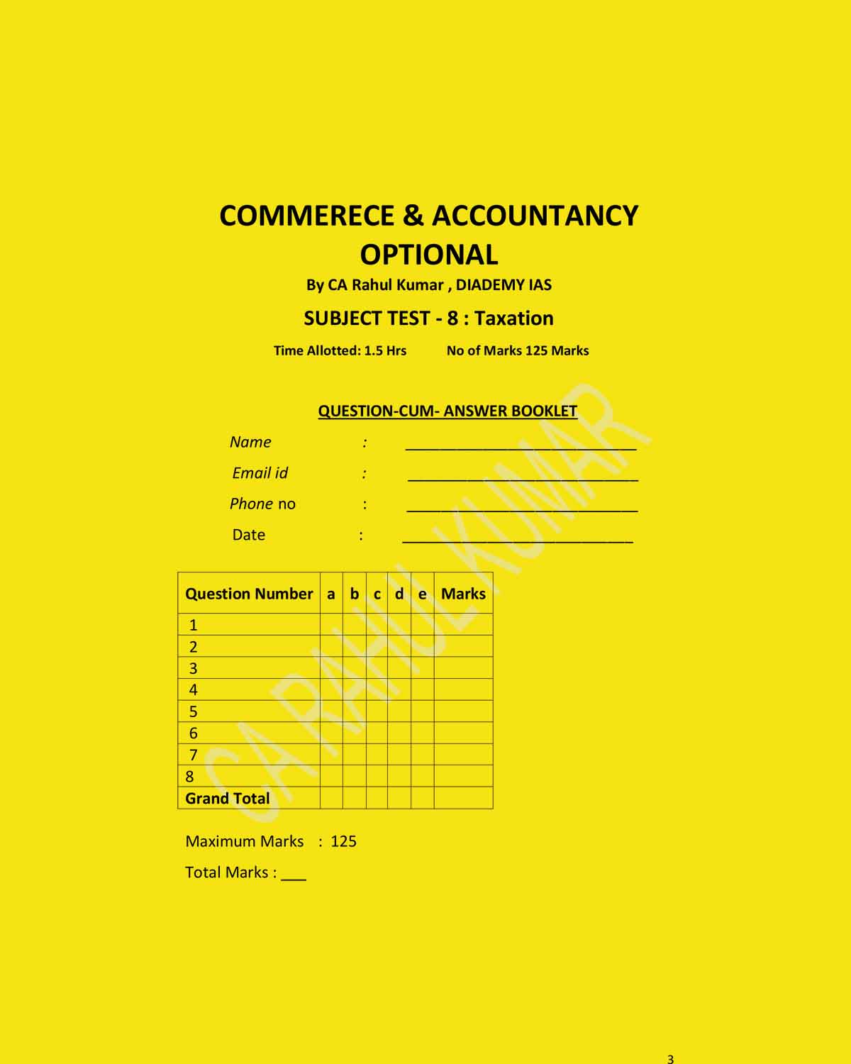 DIADEMY IAS 2023 QUESTION CUM ANSWER BOOKLETS TEST-8 (TAXATION) 2023 FINAL (ENGLISH) (BLACK AND WHITE)
