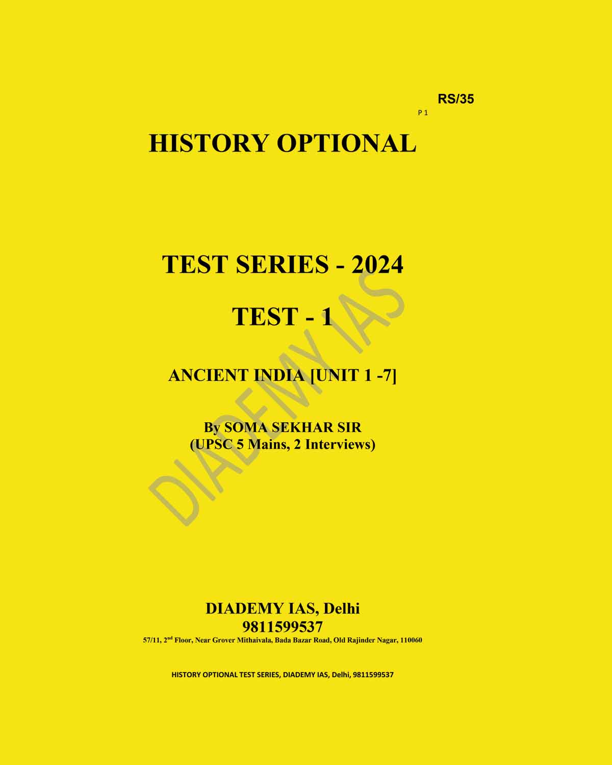 / DIADEMY IAS 2024 QCA BOOKLET TEST-1 2024 FINAL {ENGLISH} {BLACK AND WHITE}