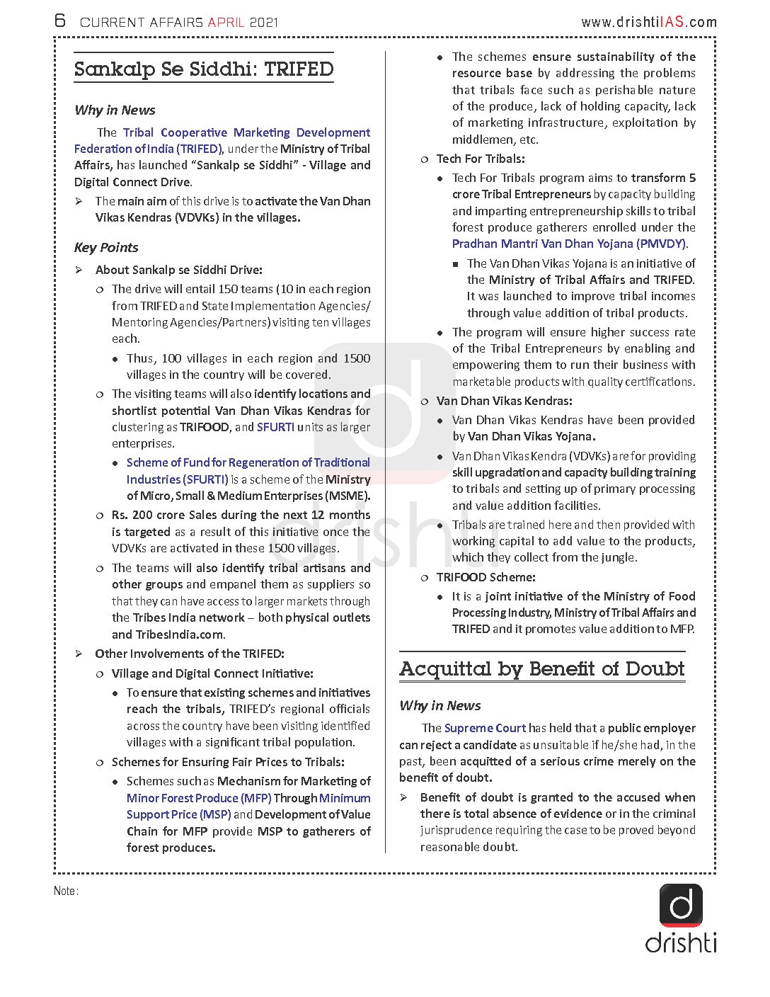 DRISHTI CURRENT AFFAIRS CONSOLIDATION-PART 1&2 – APRIL 2021 (BLACK & WHITE)