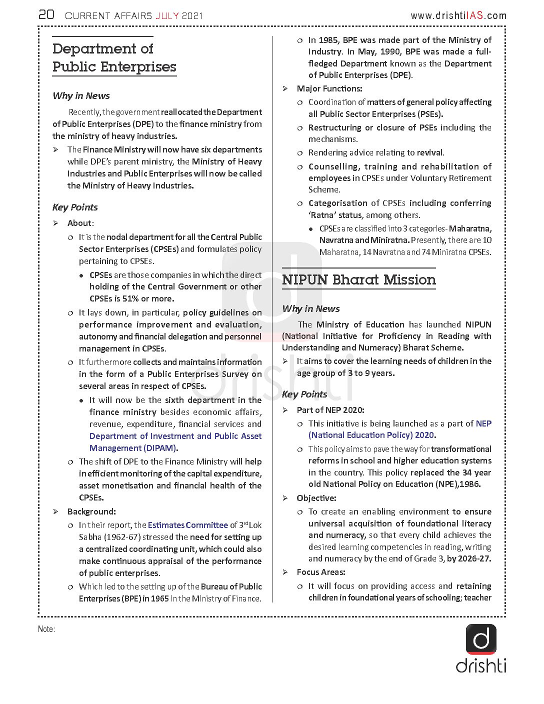 / DRISHTI CURRENT AFFAIRS CONSOLIDATION PART 1&2 JULY 2021 (BLACK & WHITE)