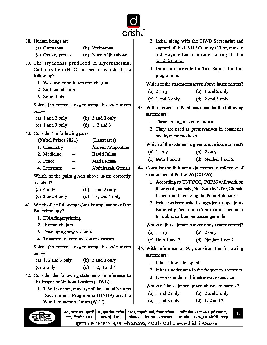 / DRISHTI IAS 2022 PRELIMS TEST SERIES (TEST CODE-2210) –TEST-10 HINDI & ENGLISH MEDIUM (BLACK & WHITE)