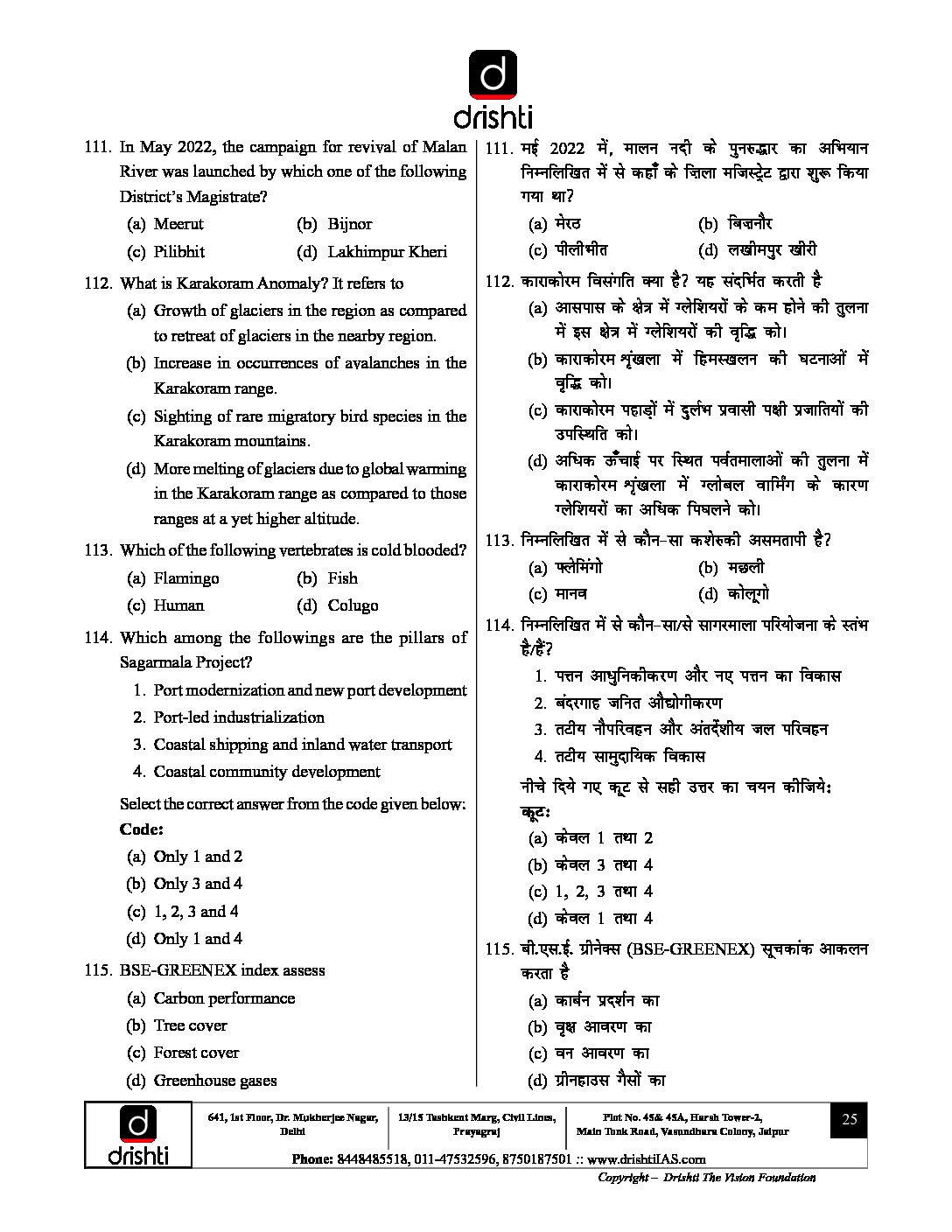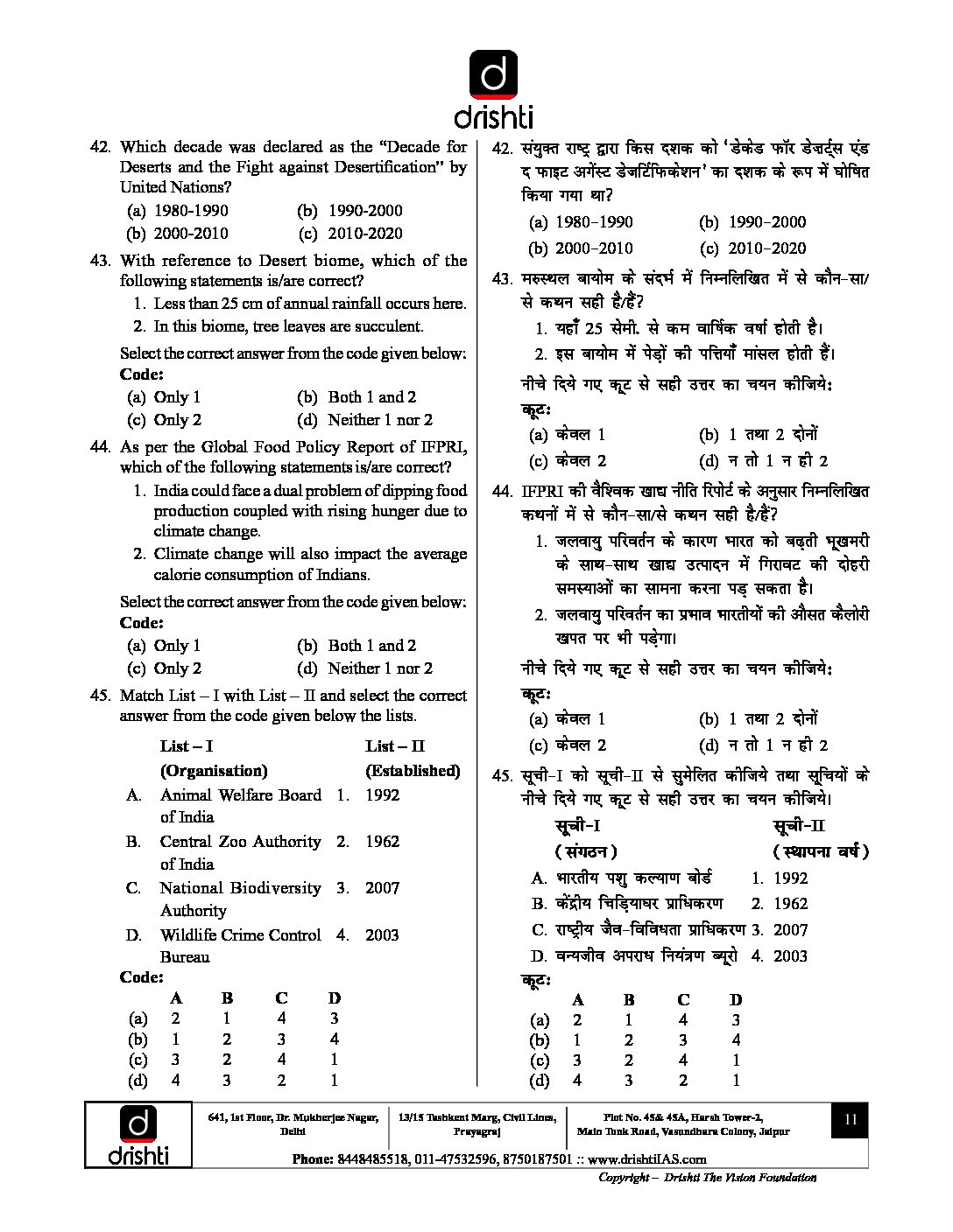 / DRISHTI IAS 2023 TEST-01 (GENERAL ISSUES ON ENVIRONMENT ECOLOGY BIODIVERISTY AND CLIMATE CHANGE) (ENGLISH & HINDI MEDIUM) BLACK & WHITE