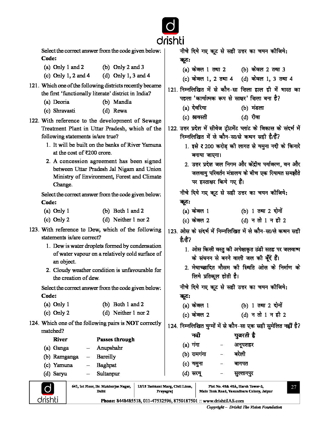 DRISHTI IAS 2022 PRELIMS TEST SERIES (TEST CODE-2218) –TEST-18 HINDI & ENGLISH MEDIUM (BLACK & WHITE)