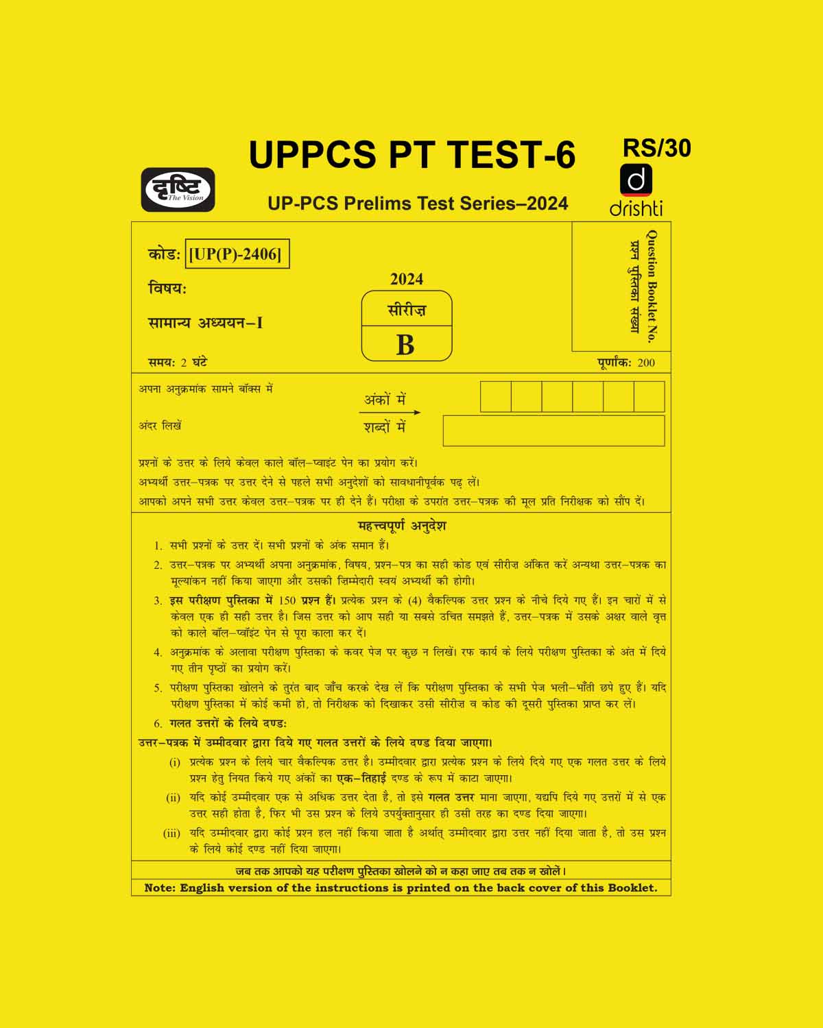 DRISHTI IAS 2024 TEST-6 2024 FINAL PTS UPPCS {ENGLISH} {BLACK AND WHITE} quantity