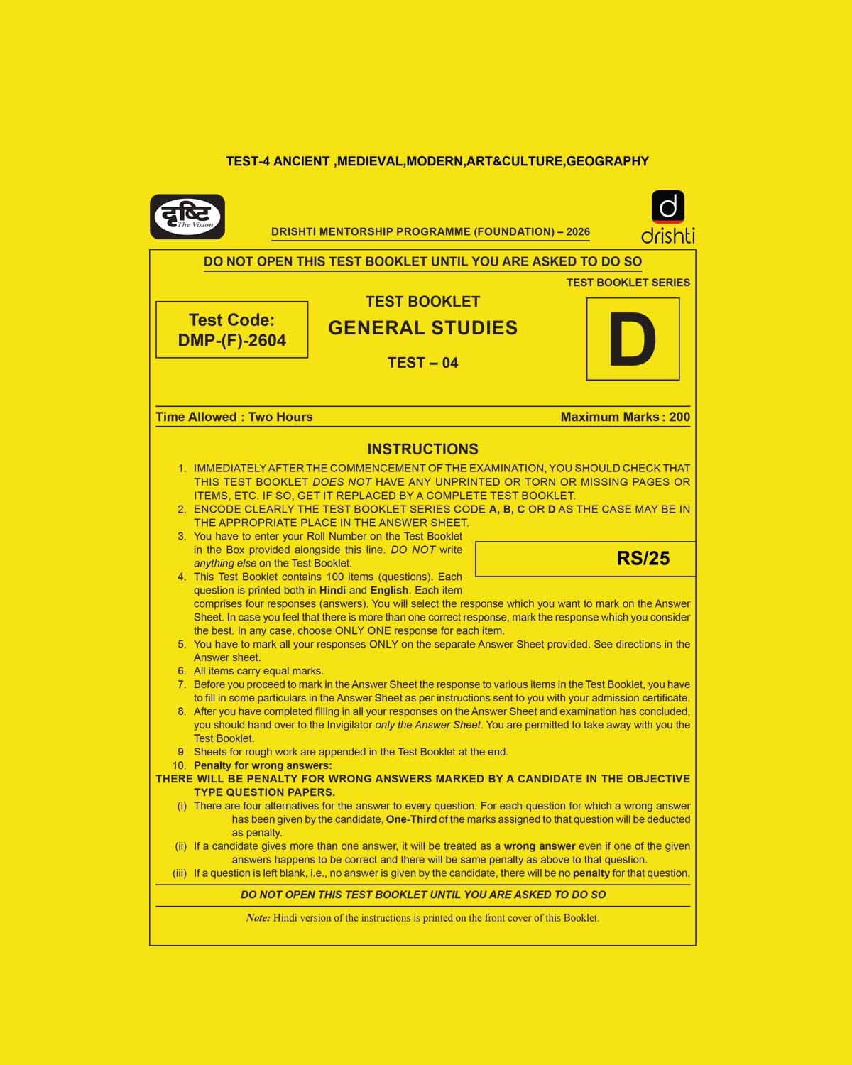 DRISHTI IAS 2026 TEST 4 ENG (2026) FINAL (ANCIENT, MEDIEVAL, MODERN, ART & CULTURE, GEOGRAPHY) (ENGLISH) {BLACK AND WHITE}