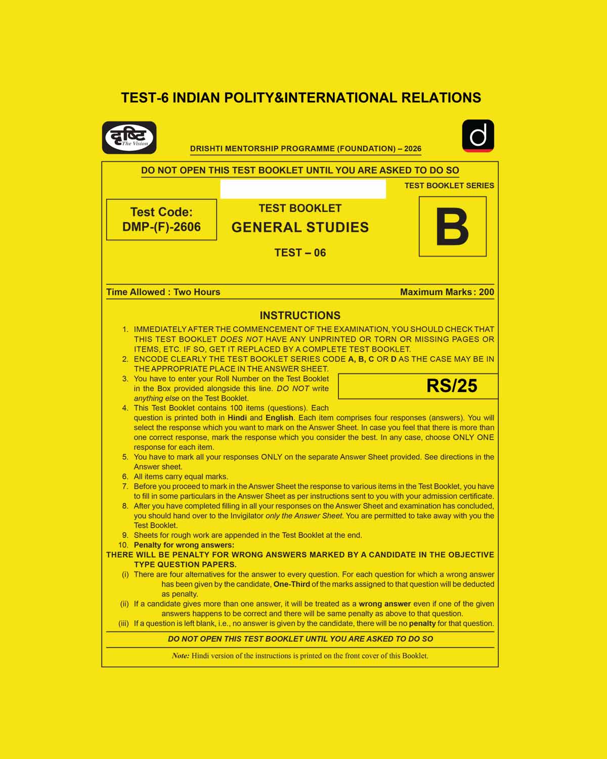 DRISHTI IAS 2026 TEST 6 ENG (2026) FINAL(INDIAN POLITY&INTERNATIONAL RELATIONS) (ENGLISH) {BLACK AND WHITE} quantity