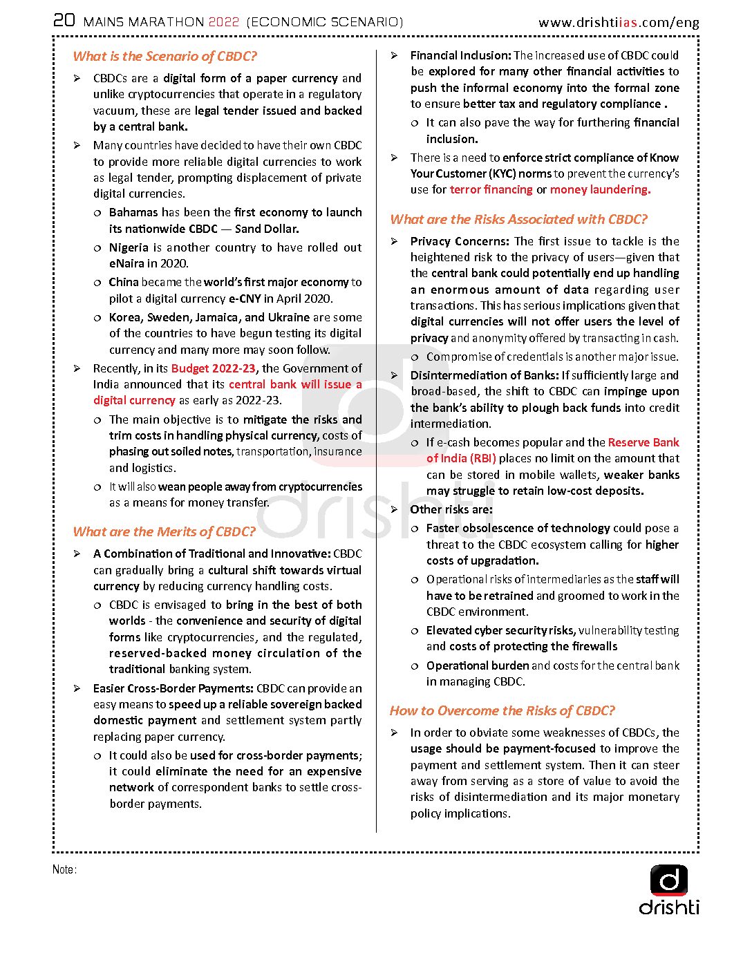 DRISHTI IAS MAINS MARATHON 2022 ECONOMIC SCENARIO (BLACK & WHITE)