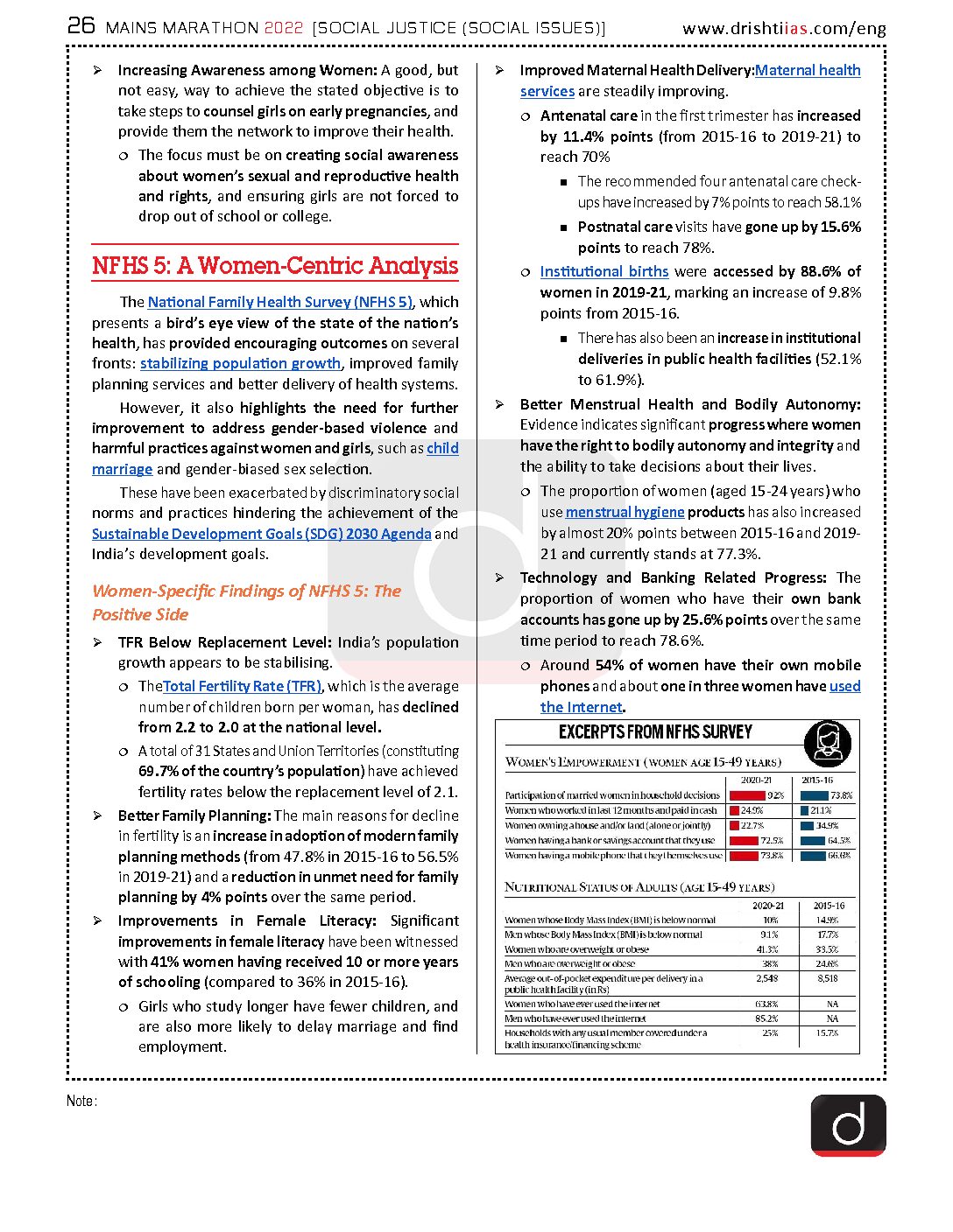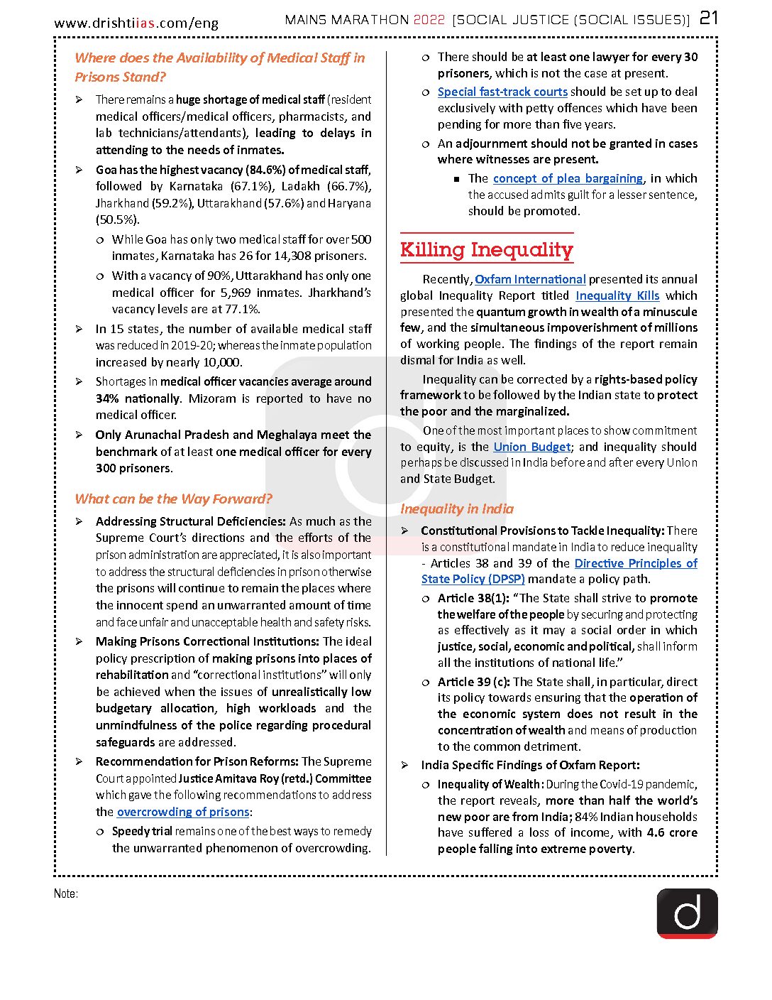 DRISHTI IAS MAINS MARATHON 2022 SOCIAL JUSTICE (SOCIAL ISSUES) (BLACK & WHITE)