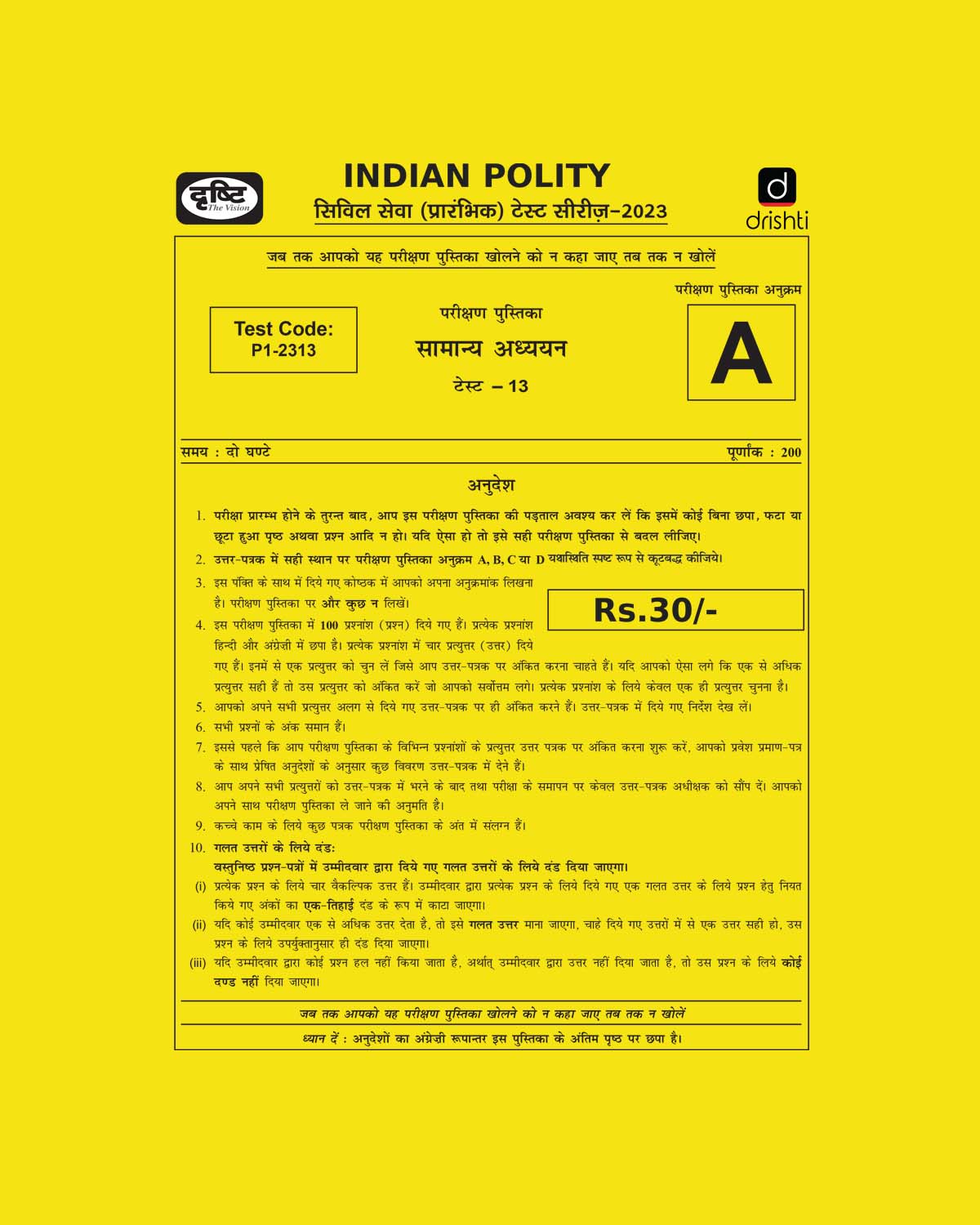 DRISHTIIAS HINDI 2023 TEST-13 (TEST CODE-P1-2313) INDIAN POLITY - HINDI MEDIUM (BLACK & WHITE) quantity