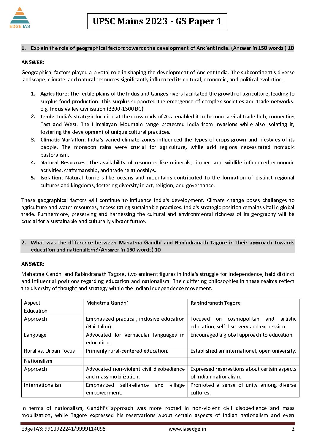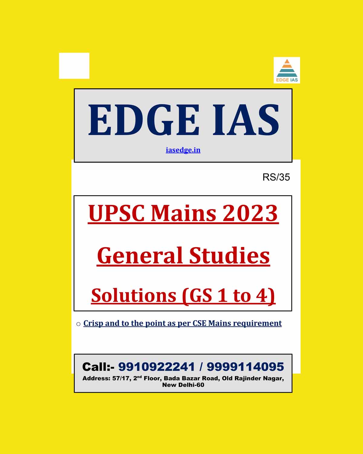 / EDGE IAS 2023 UPSC MAINS 2023 GENERAL STUDIES SOLUTIONS (GS 1 TO 4) ENGLISH MEDIUM (BLACK & WHITE)