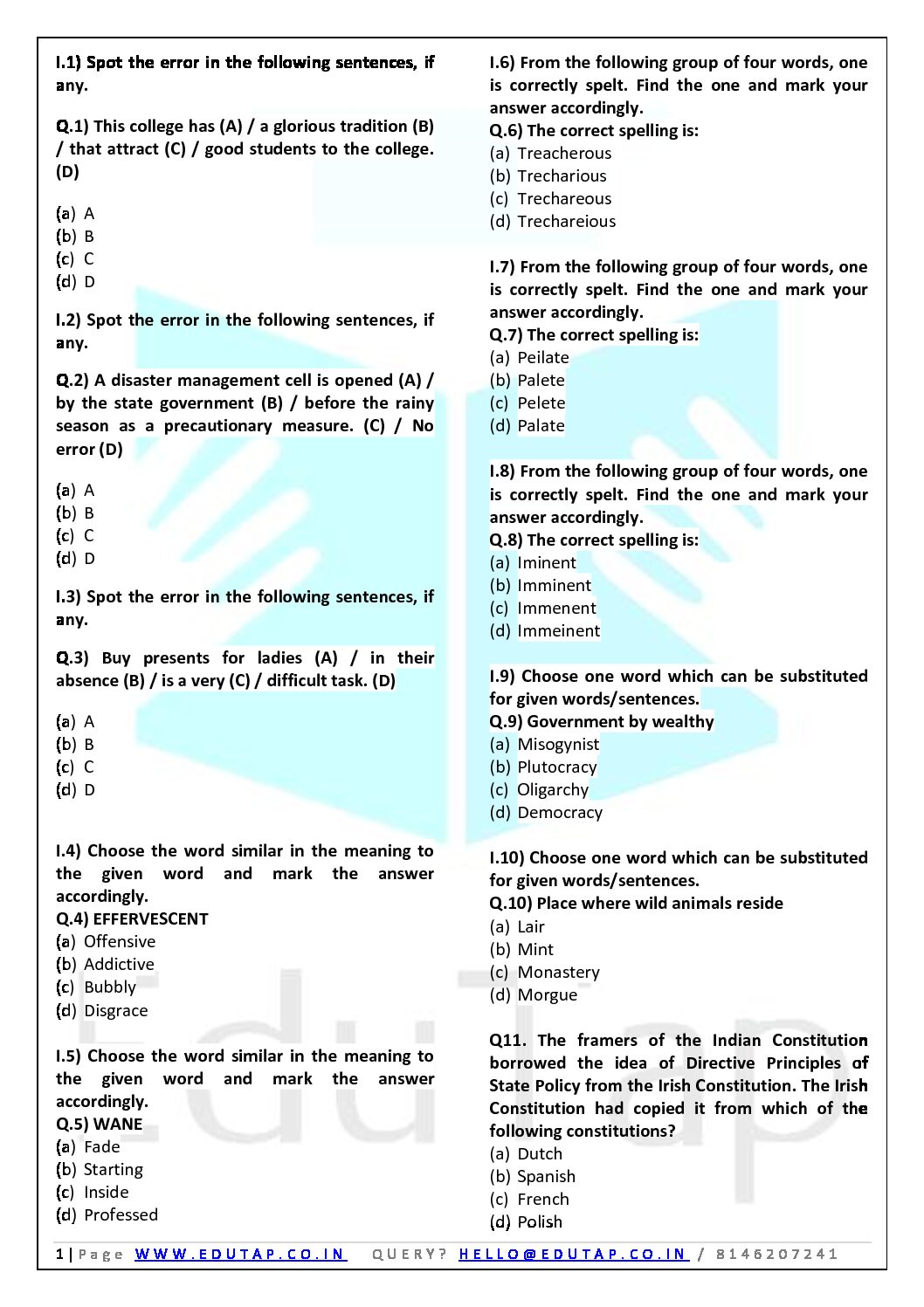 EDU TAP 2023 EPFO APFC FULL LENGTH TEST-01 ENGLISH MEDIUM 2023 (BLACK & WHITE)