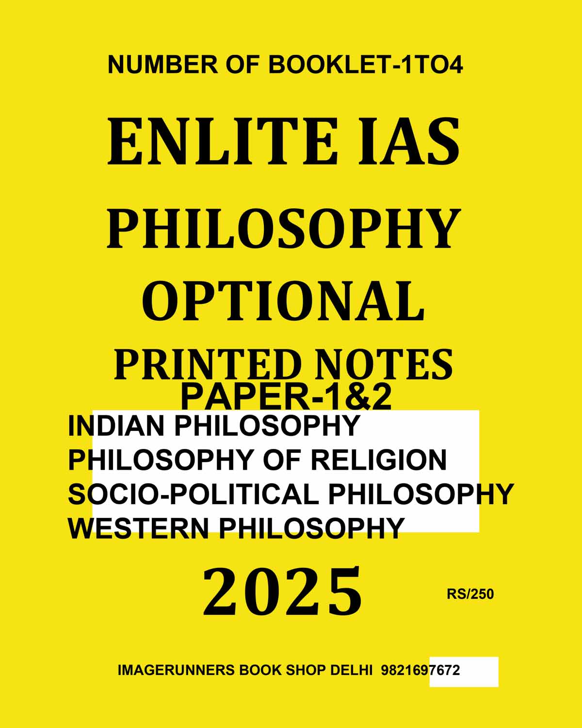EILITE IAS 2025 PHILOSOPHY PRINTED NOTES 2025 FINAL (NUM.OF BOOKLET-1TO4) (WESTERN PHILOSOPHY, INDIAN PHILOSOPHY, SOCIO-POLITICAL PHILOSOPHY, PHILOSOPHY OF RELIGION) (ENGLISH) {BLACK AND WHITE}