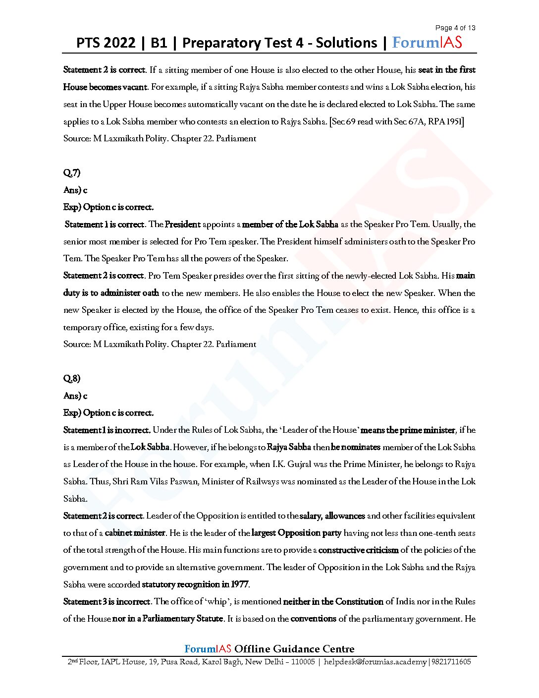 FORUM IAS 2022 PREPARATORY- TEST-04 PTS-2022-BATCH-1 (BLACK & WHITE)