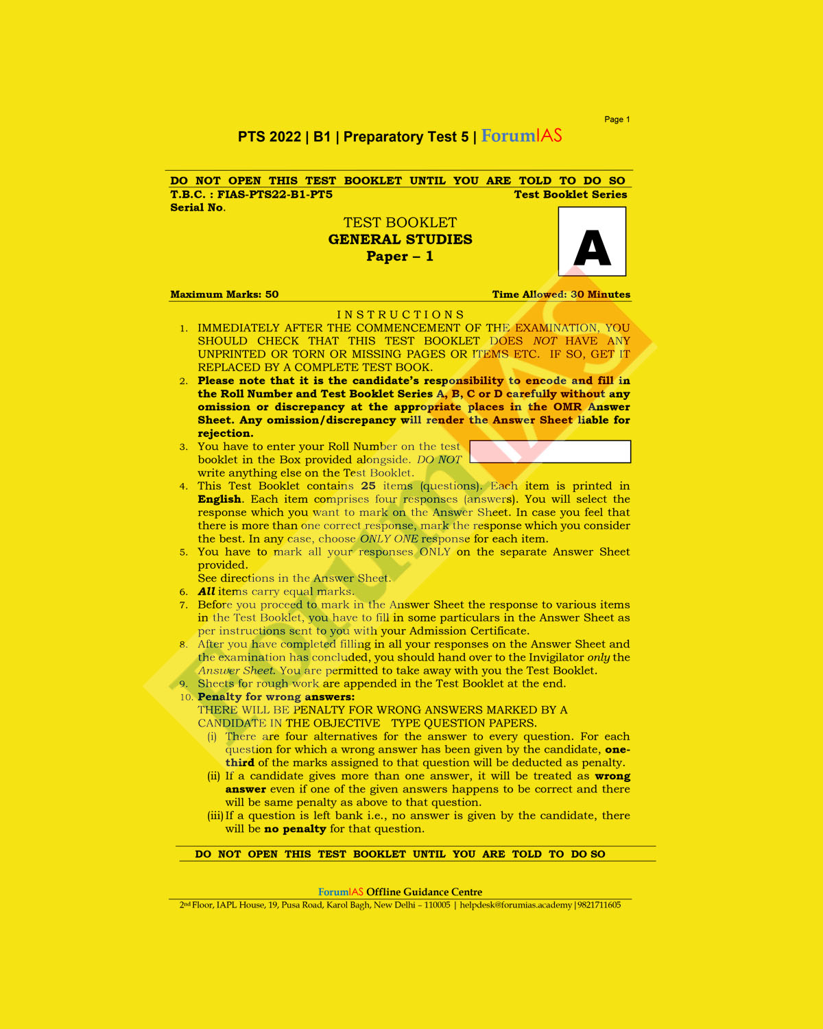 FORUM IAS 2022 PREPARATORY- TEST-05 PTS-2022-BATCH-1 (BLACK & WHITE) quantity