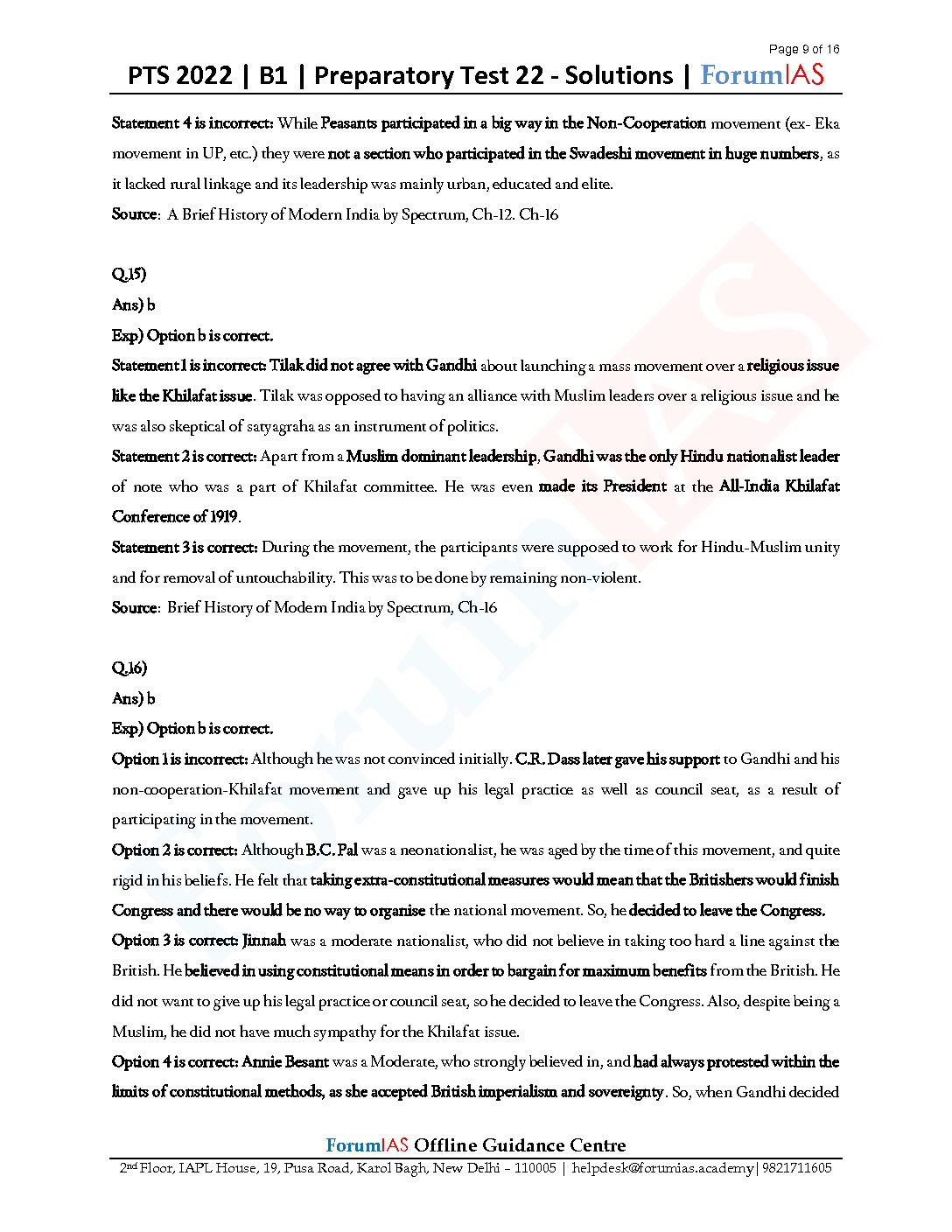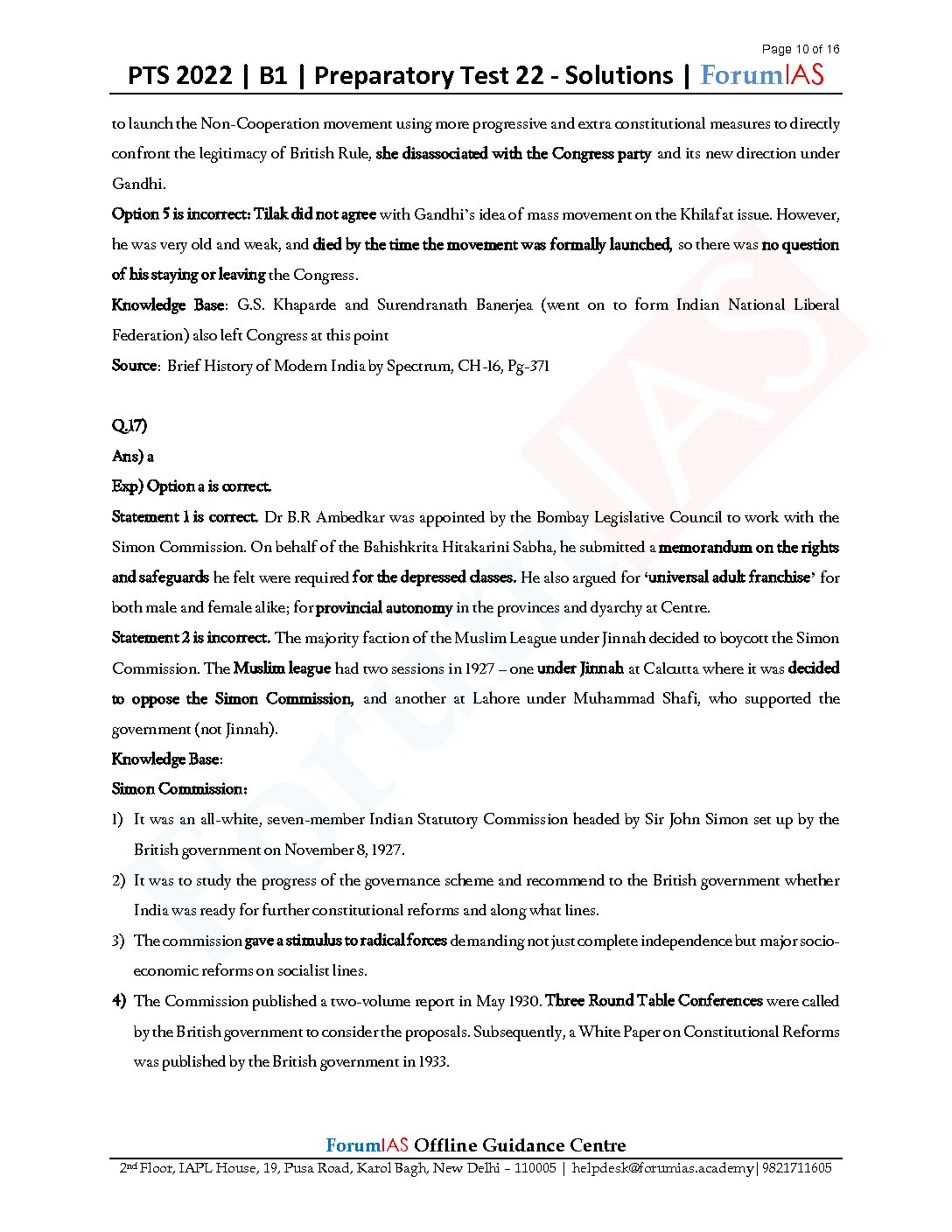 FORUM IAS 2022 PREPARATORY- TEST-22 PTS-2022-BATCH-1 (B & W)