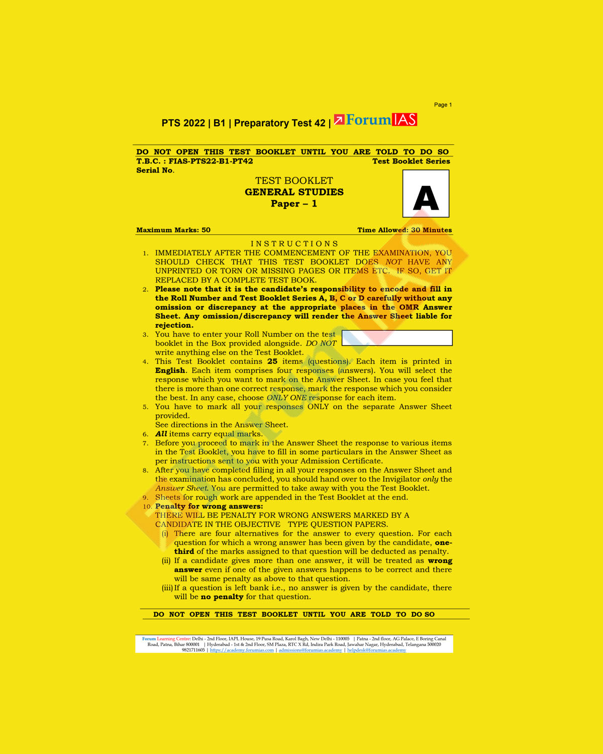 / FORUM IAS 2022 PREPARATORY- TEST-42 (PTS-2022-BATCH-1) (BLACK &WHITE)