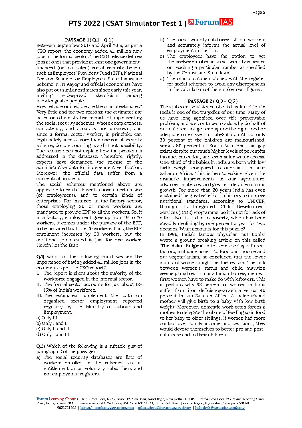 FORUM IAS CSAT 2022 SIMULATOR TEST-1 (BLACK & WHITE)