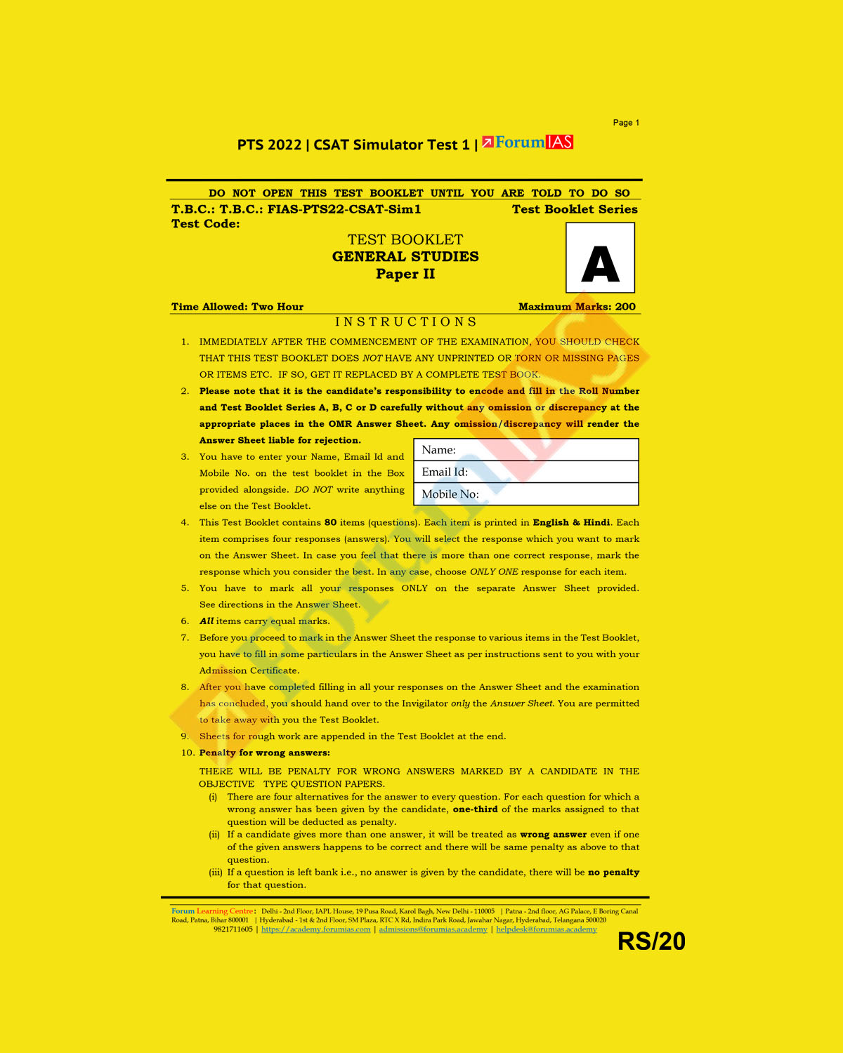 / FORUM IAS CSAT 2022 SIMULATOR TEST-1 (BLACK & WHITE)