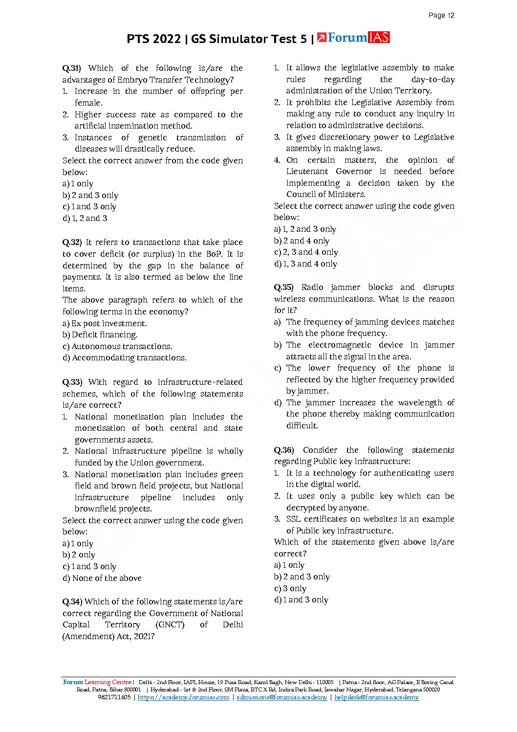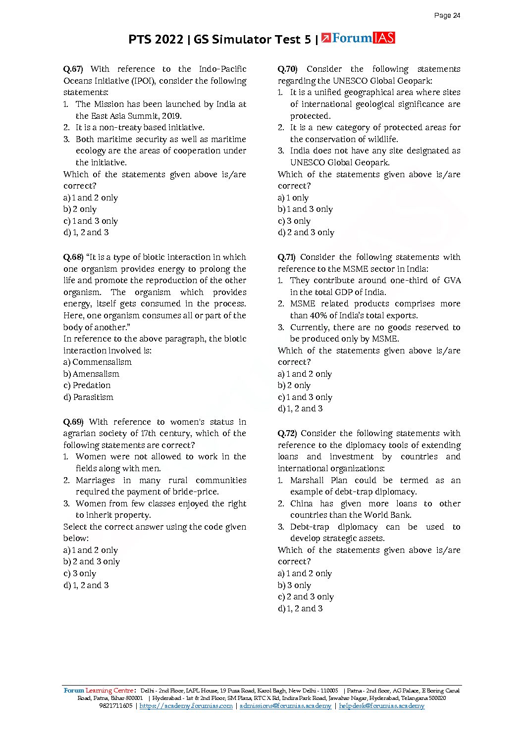 FORUM IAS 2022 SIMULATOR TEST TEST-5 PTS GENERAL STUDIES PAPER– I (BLACK & WHITE)