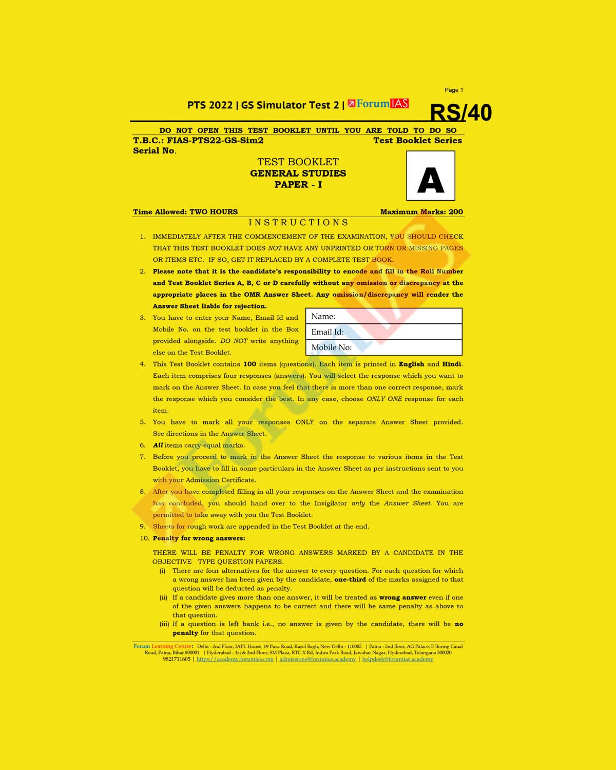 FORUM IAS 2022 SIMULATOR TESTS TEST-2 (BLACK & WHITE) quantity
