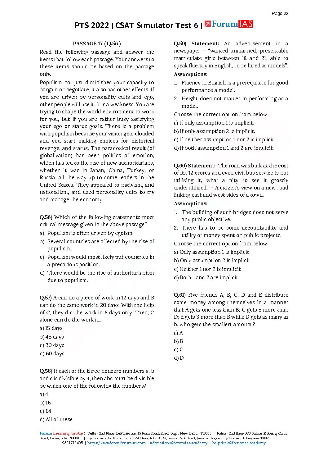 / FORUM IAS 2022 SIMULATOR TESTS TEST-6 (CSAT) (BLACK & WHITE)
