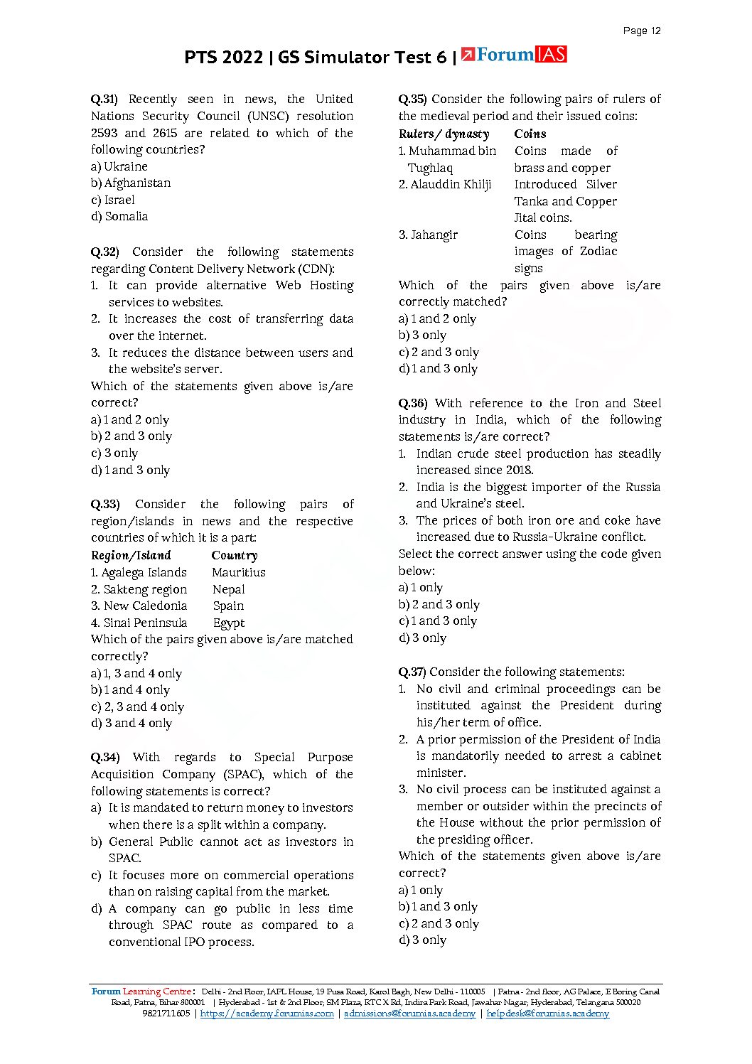 FORUM IAS 2022 SIMULATOR TESTS TEST-6 PTS GENERAL STUDIES PAPER– I (BLACK & WHITE)