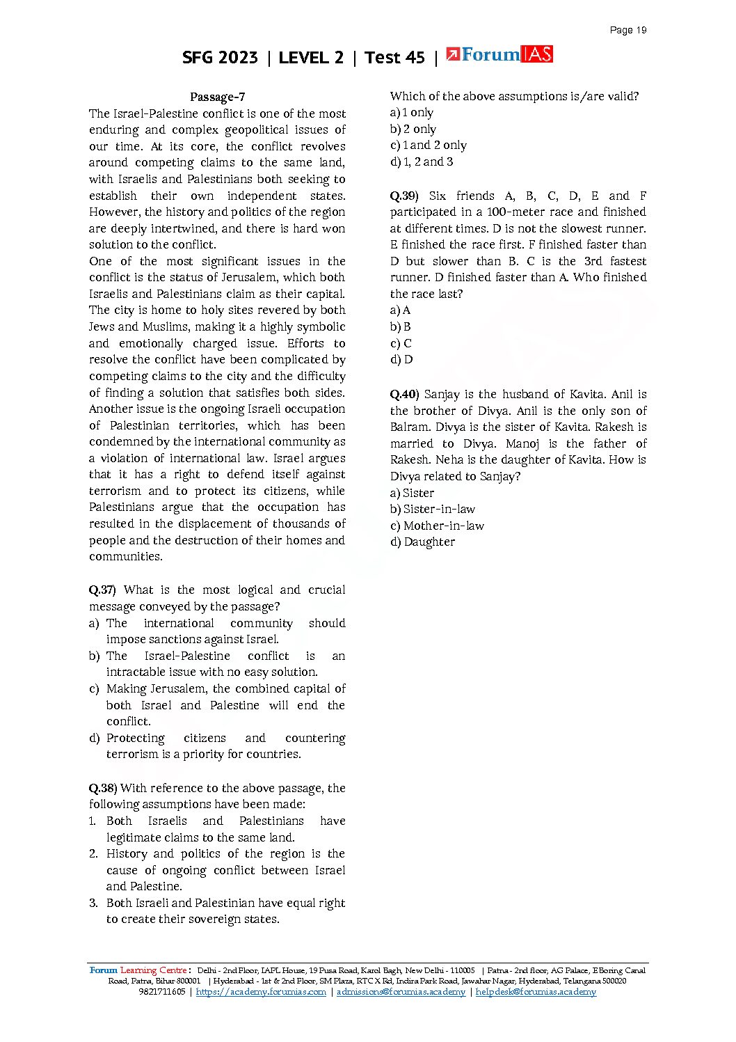 / FORUM IAS 2023 SFG LEVEL-2 TEST-45 (CSAT) BLACK & WHITE