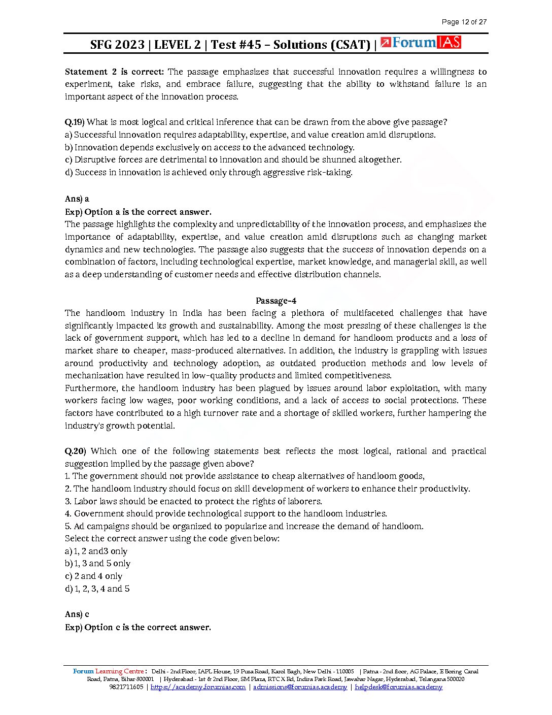 FORUM IAS 2023 SFG LEVEL-2 TEST-45 (CSAT) BLACK & WHITE