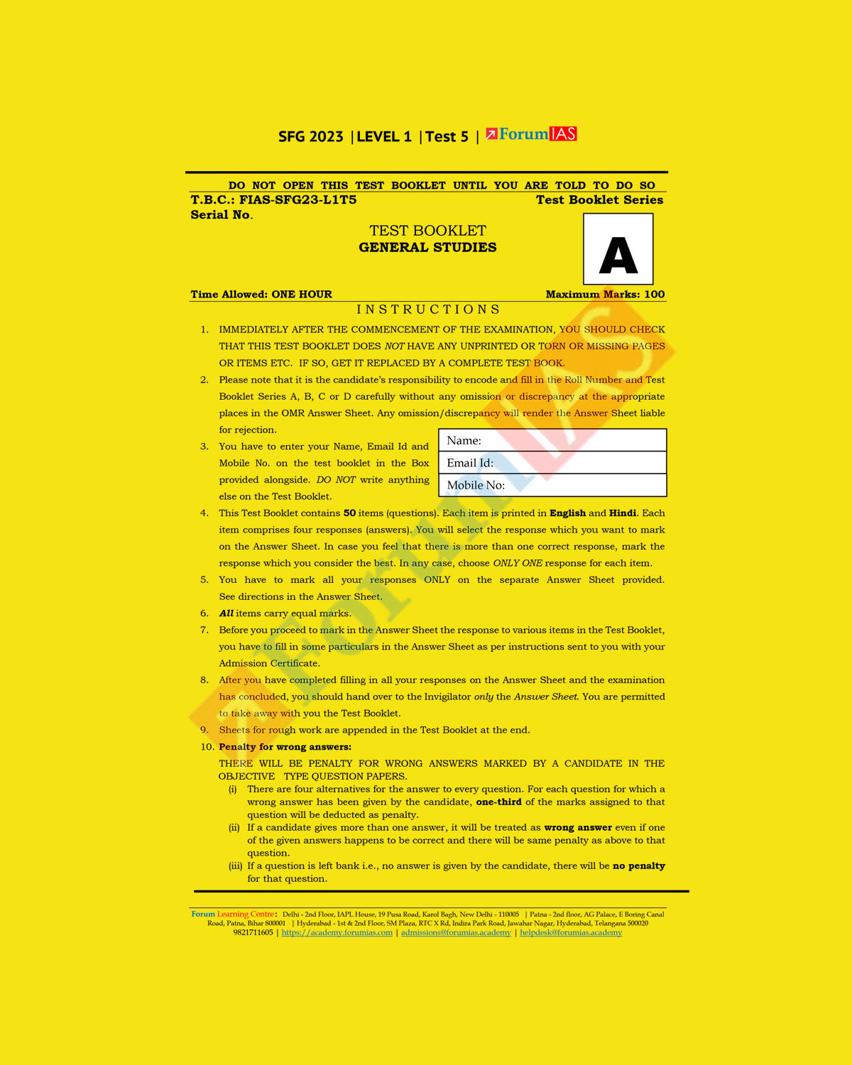 / FORUM IAS 2023 SFG LEVEL1 TEST-5 (POLITY-5) GENERAL STUDIES (BLACK & WHITE)