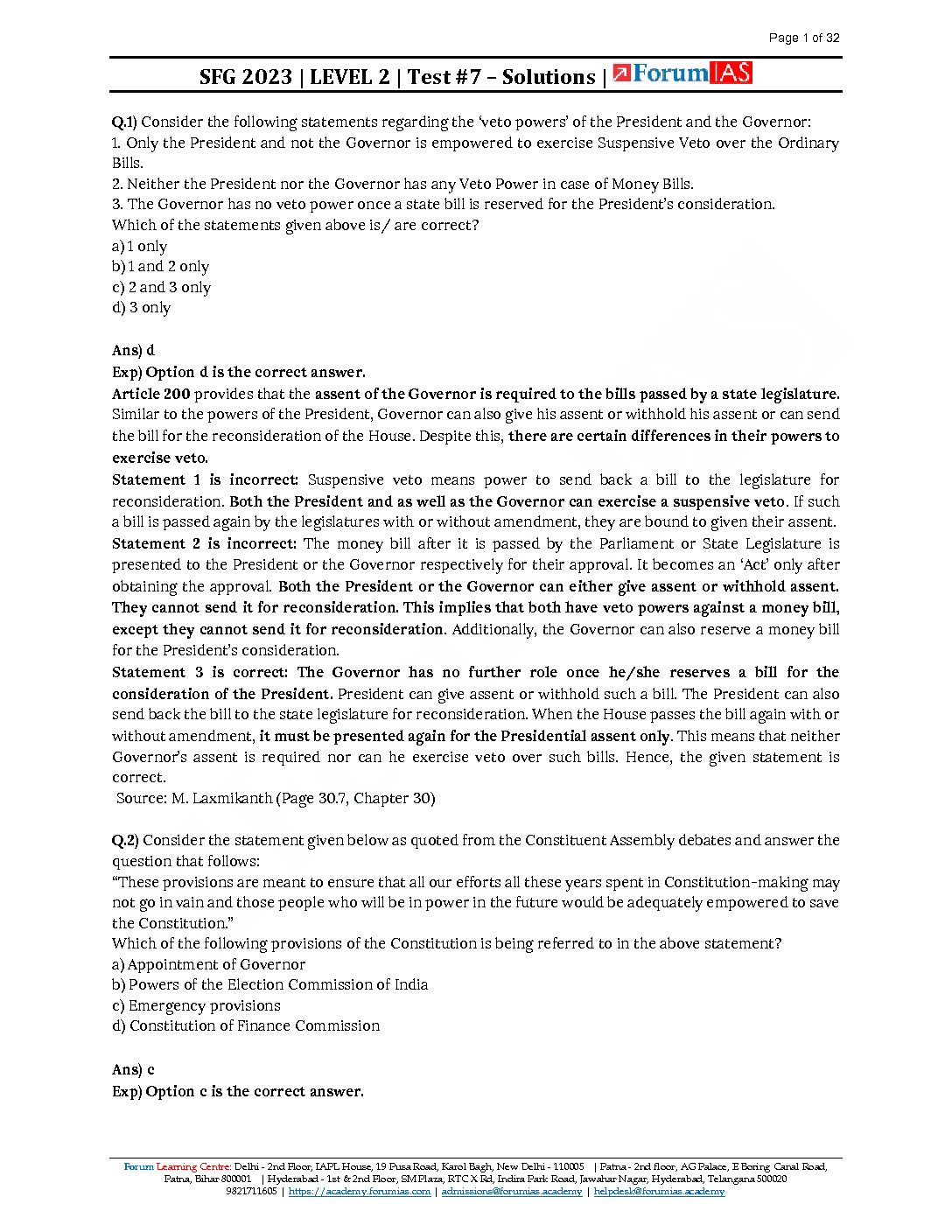 / FORUM IAS 2023 SFG LEVEL2 TEST- 7 (POLITY) BLACK & WHITE
