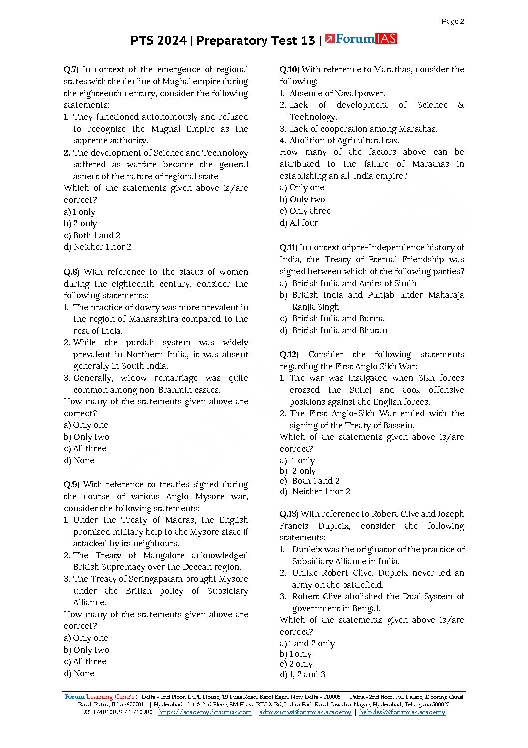 FORUM IAS 2024 BATCH1 PREPARATORY TEST-13 TO16 MODERN HISTORY 2024 FINAL ENGLISH {BLACK AND WHITE}