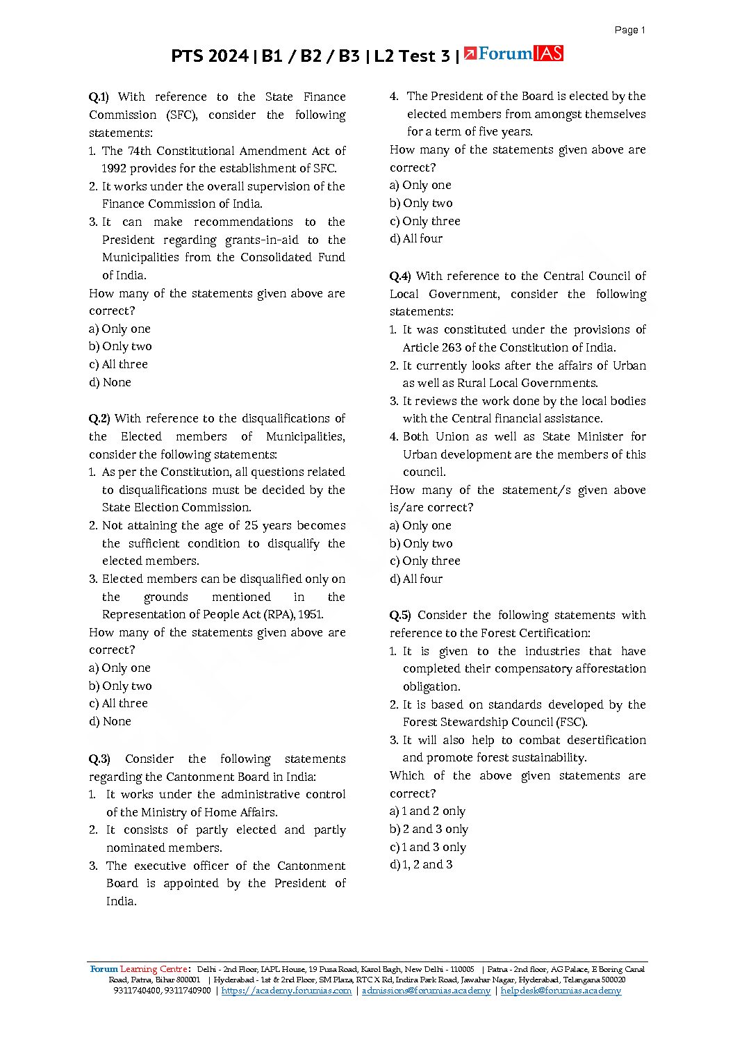 FORUM IAS 2024 GS PTS TEST-15 L2 TEST-3 (POLITY-III) ENGLISH MEDIUM 2024 (BLACK & WHITE)